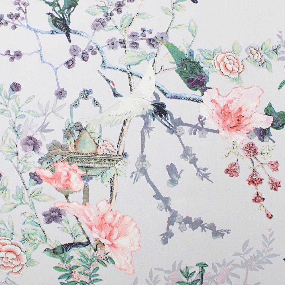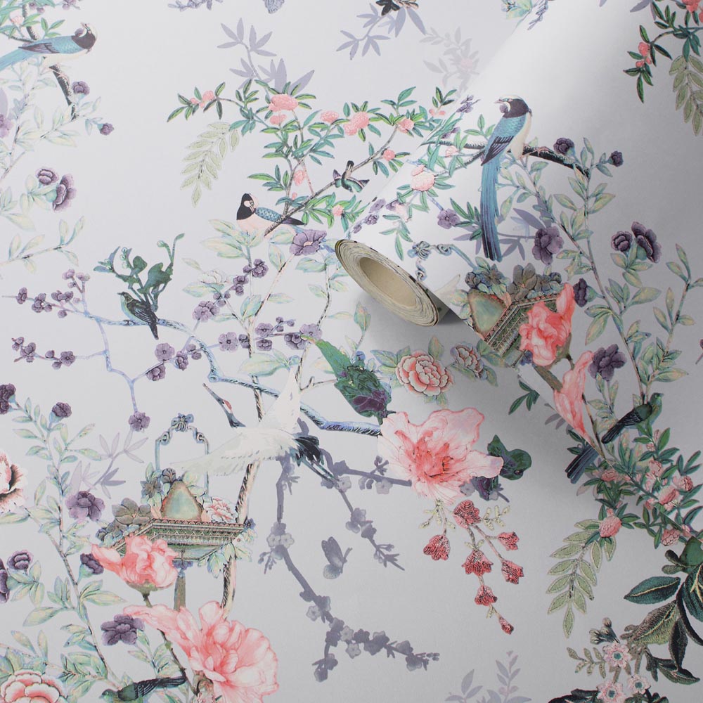 This Ophelia Wallpaper from Lipsy combines tropical and Chinoise design elements to form a fantastical oriental scene of cherry blossoms, birds of paradise, and delicate bamboo leaves. Finished in grey, the romantic colour palette in fresh tones feels gives a soft and feminine look. Super easy to hang, it is perfect for brightening up bedrooms, living rooms and formal dining rooms.