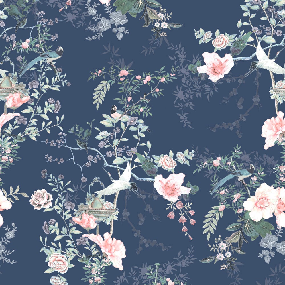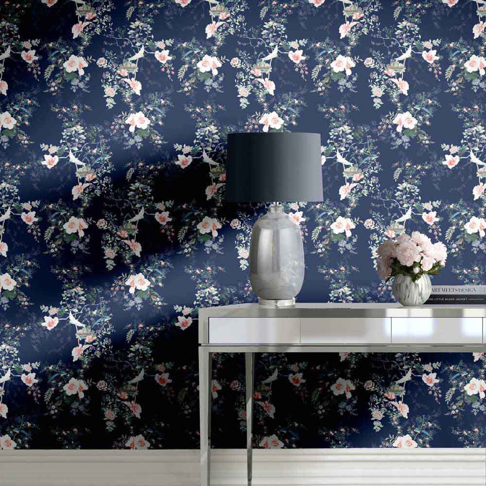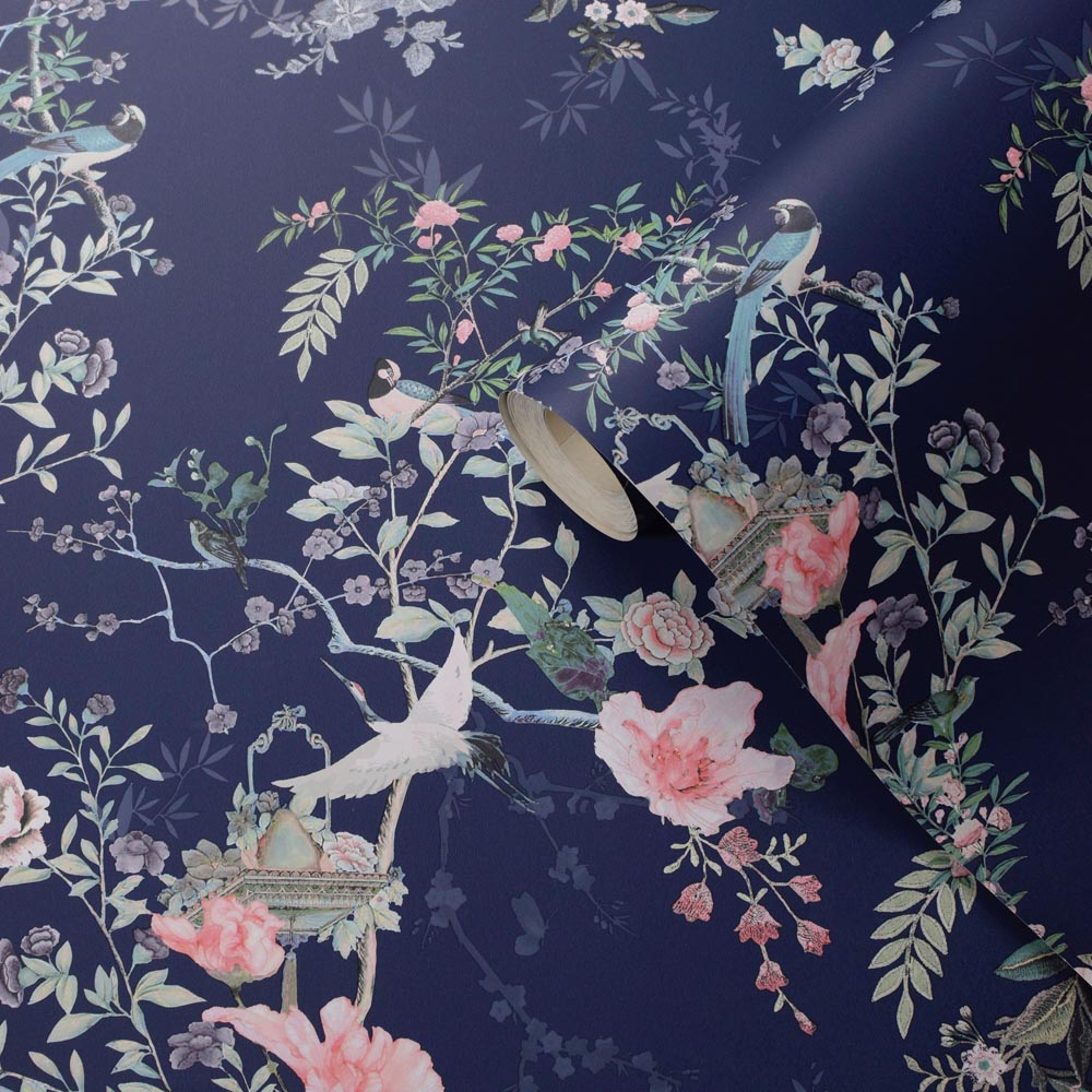 This Ophelia Wallpaper from Lipsy combines tropical and Chinoise design elements to form a fantastical oriental scene of cherry blossoms, birds of paradise, and delicate bamboo leaves. Finished in navy blue, the romantic colour palette in fresh tones feels gives a soft and feminine look. Super easy to hang, it is perfect for brightening up bedrooms, living rooms and formal dining rooms.
