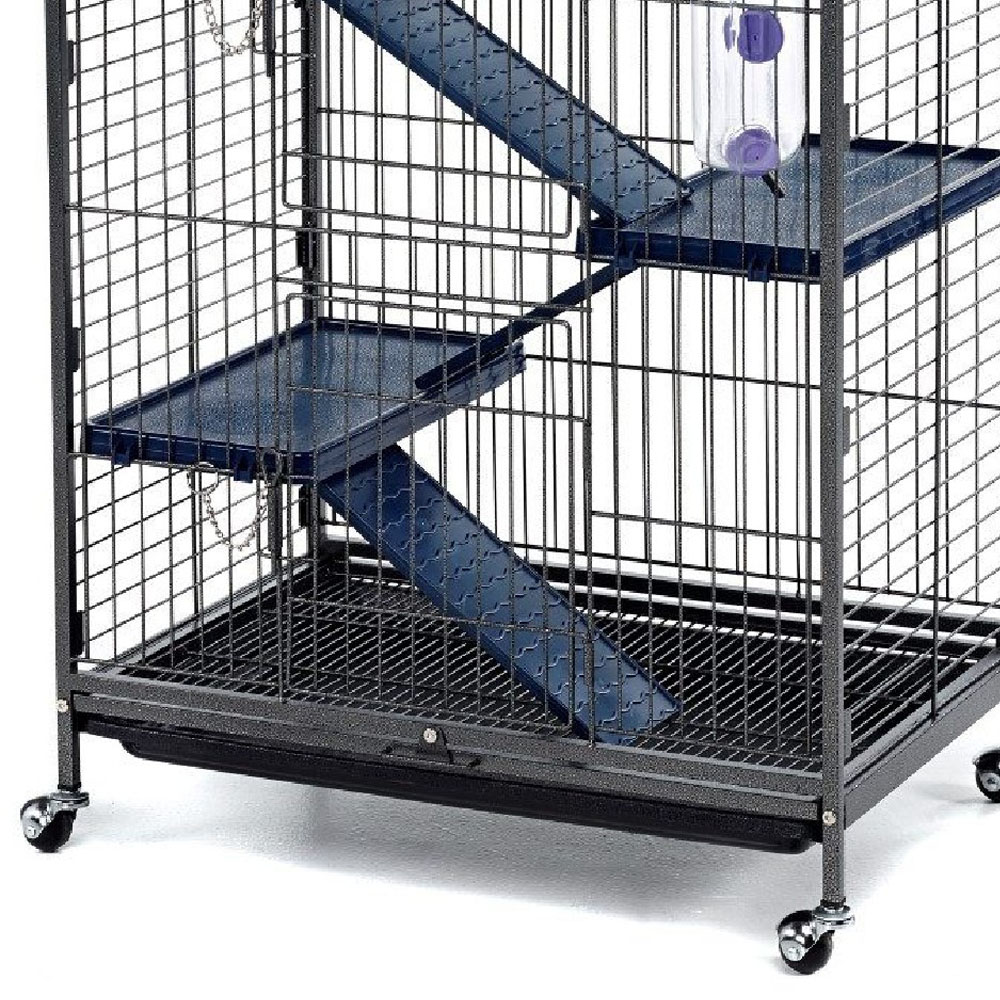 Create a fun and cosy home for your rats with Little Friends Blenheim Rat Cage with Accessories. Standing at a practical 93cm tall, this cage features multiple levels, giving your rats plenty of room to climb, explore, and play. It comes with essential accessories like platforms and ladders to enhance their environment and keep them entertained. The durable black metal construction ensures long-lasting use, and the 2.5cm bar spacing is ideal for keeping your rats safe and secure. Cleaning is a breeze with the large front door that provides easy access to every part of the cage. Designed for both comfort and practicality, it’s an excellent choice for any rat owner.