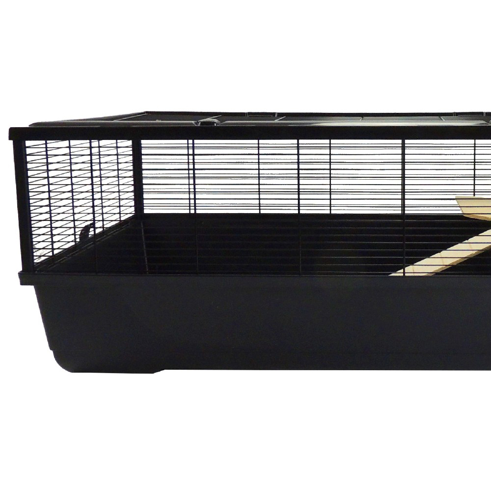 Upgrade your pet's home with the Little Friends The Grosvenor XL Black Small Animal Cage for extra space and comfort. This expanded version includes a wooden shelf, ladder, and a plastic bowl, perfect for your small pets. With super narrow 1cm bar spacing and a collapsible design, it combines security and convenience.