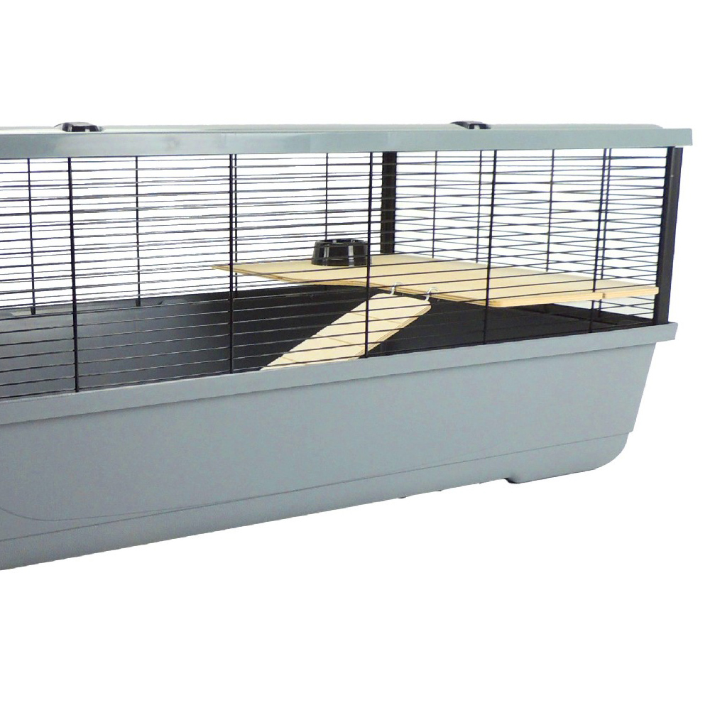 Get the ultimate home for your small pets with the Little Friends The Grosvenor XL Grey Animal Cage. Perfect for rats, hamsters, chinchillas, and other similar-sized pets, it offers extra room for them to explore. Also included are a wooden shelf, ladder, and plastic bowl, ensuring your pets have everything they need for a comfortable living environment. The super narrow 1cm bar space provides added security, keeping your pets from escaping. Give your pets the extra room they deserve with its massive 100 x 54 x 39cm size.