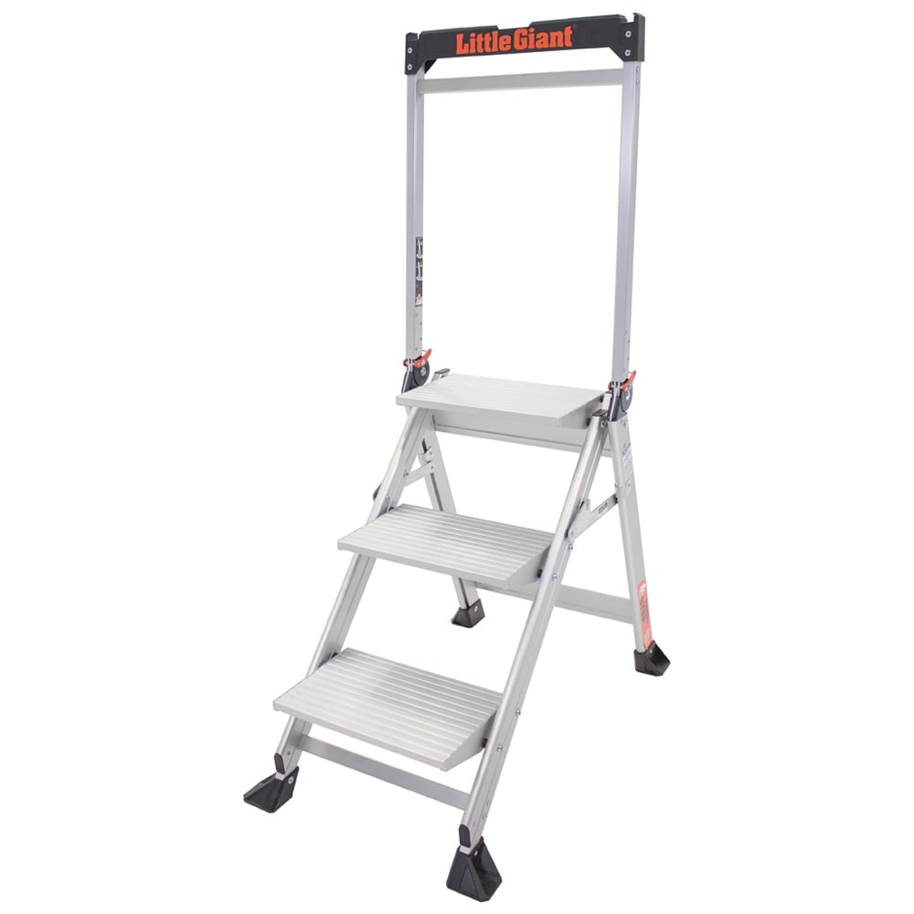 The Little Giant 3 Tread Jumbo Step provides comfort and stability while working around the home on a variety of DIY tasks. With 21.5cm wide, slip-resistant treads and a stair-like design - it is ideal for jobs that require both frequent climbing up and down, as well as those that require long periods of standing. The handrail includes a built-in comprehensive tool tray - it also folds down to use as a simple hop-up.