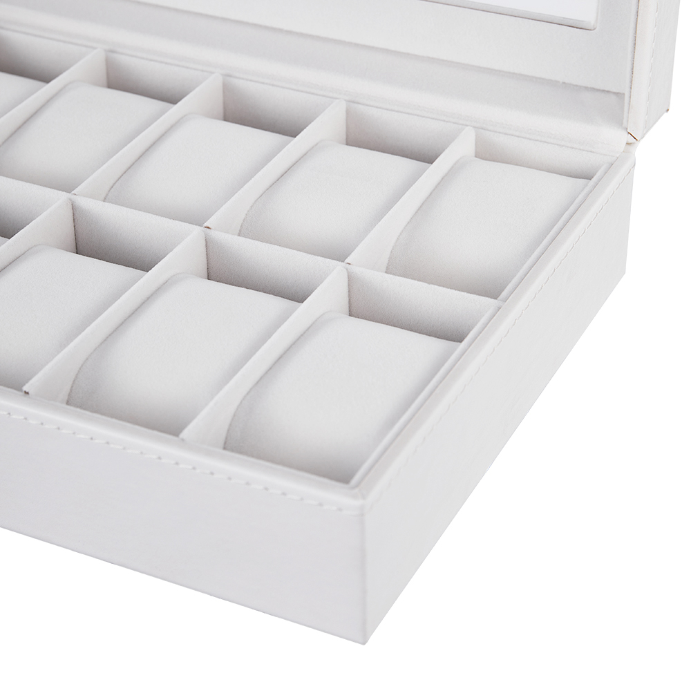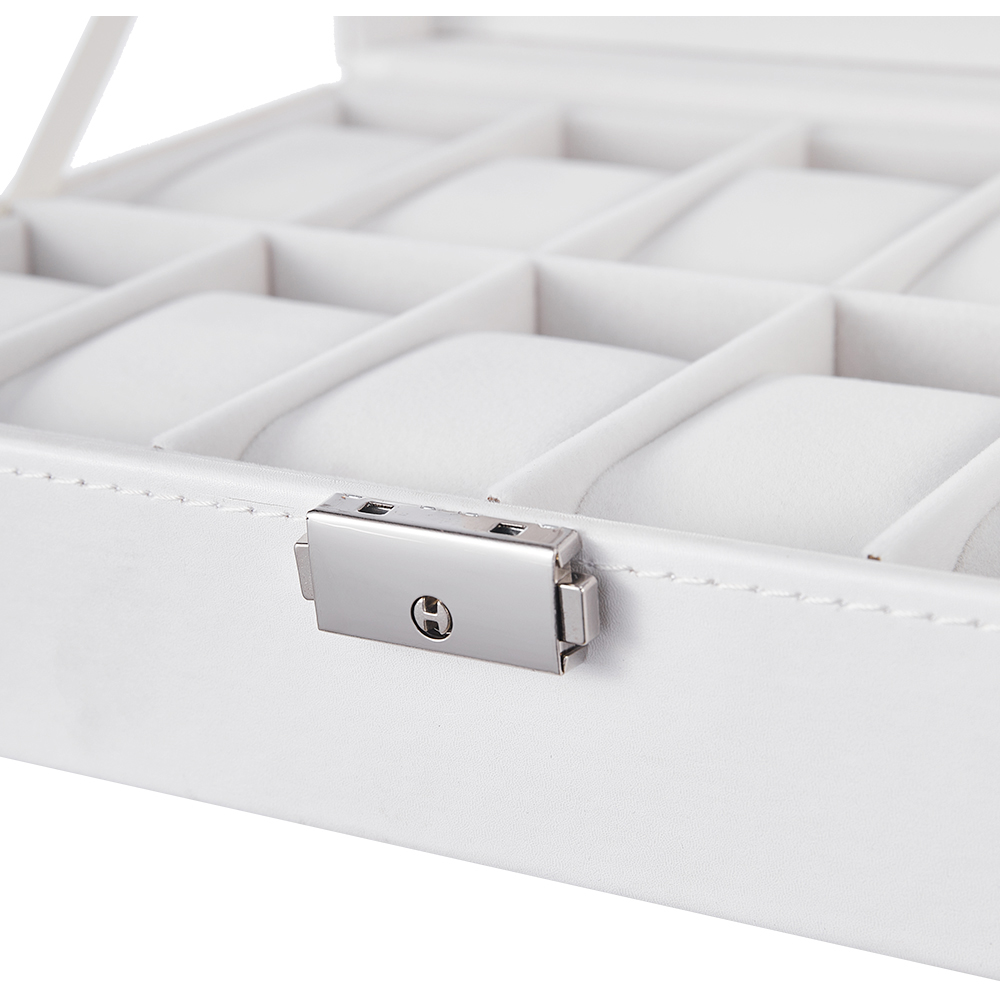 This watch box is simple yet exquisite, and the white faux leather exterior takes most of the credit. The clear window on the lid not only keeps your watches from dust but also allows you to admire your proud timepieces without opening the box. It is large enough to fit 12 watches in separate compartments. And each slot comes with a watch pillow to keep the watches in good shape. Made from selected PU, the case adds depth and texture to your watch collection.