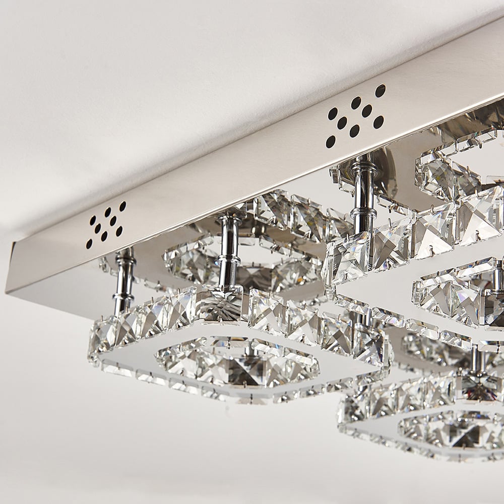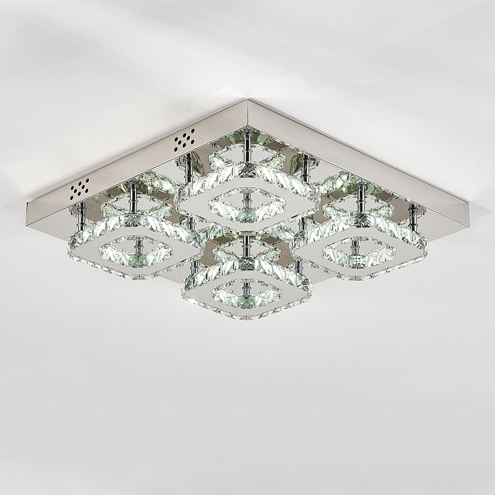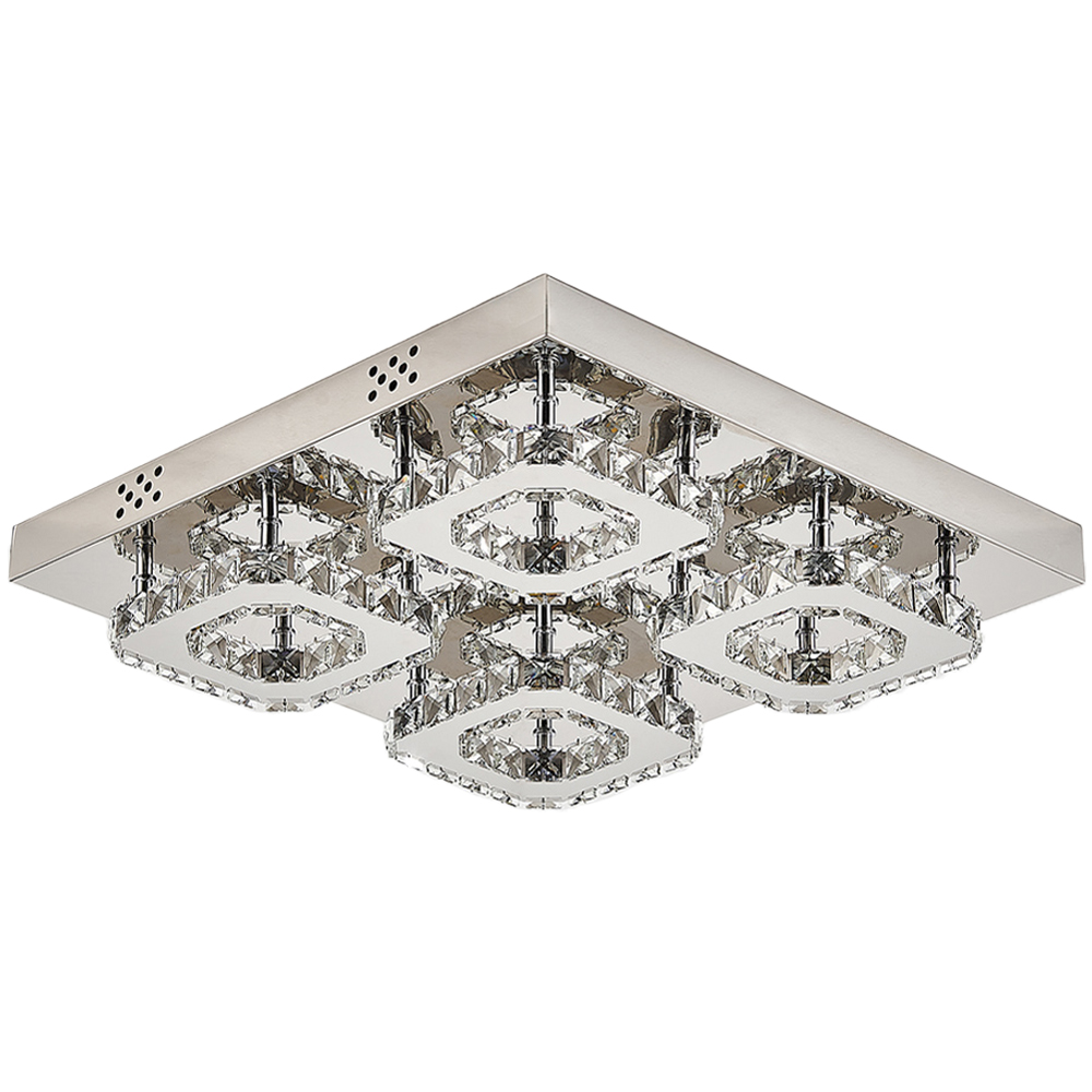 Showcase your refined taste with the Living and Home 16 inch Square Glamourous crystal LED Ceiling Light. Featuring a square design adorned with clear crystals, it combines eye-catching elegance with practical functionality. The LED lights offer bright illumination while reducing electricity consumption. This ceiling light enhances the look of any living area with its sophisticated style. The polished stainless-steel accents help refract light, providing a broader range of illumination. Constructed from high-quality metal using advanced industrial methods, it ensures durability, and long-lasting performance, making it the perfect choice for adding a touch of glamour at home. Please click here to find our range of lightbulbs.