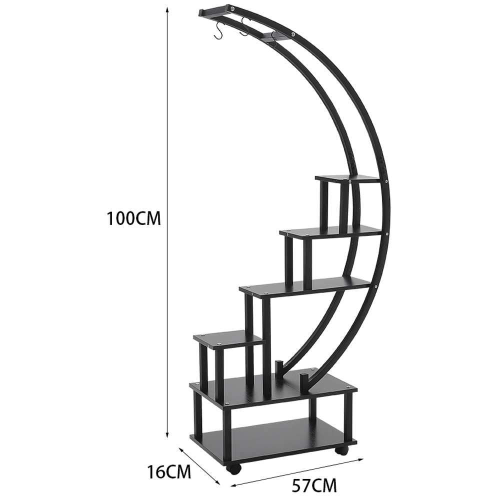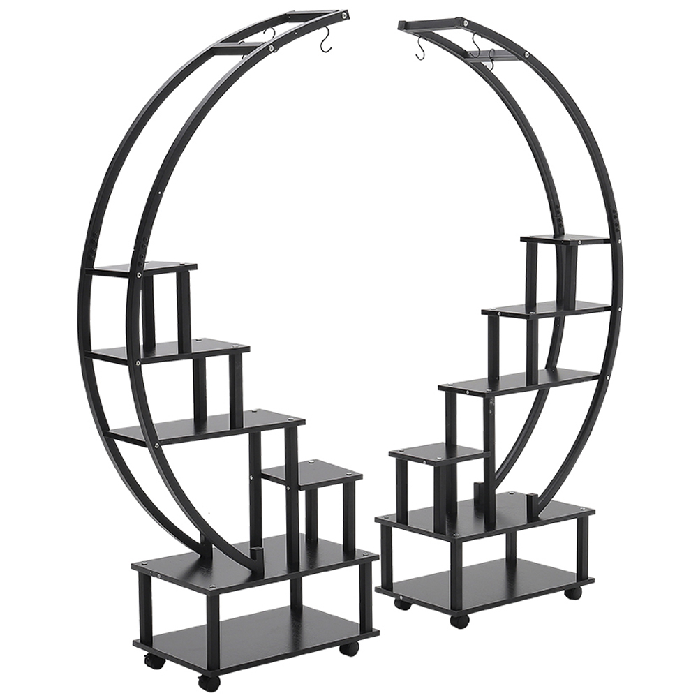 Enhance the beauty of your indoor plants with the Living and Home 2 Piece Half-Moon-Shaped Plant Stand. Designed with a unique customisable half-moon design, the plant holder provides an eye-catching and functional way to display your beloved plants. With detachable wheels, you can easily move and rearrange your greenery to suit your preference. Whether you have a collection of succulents, flowers, or herbs, the plant stand set offers six spacious tiers of shelves and hooks for showcasing your botanical treasures.