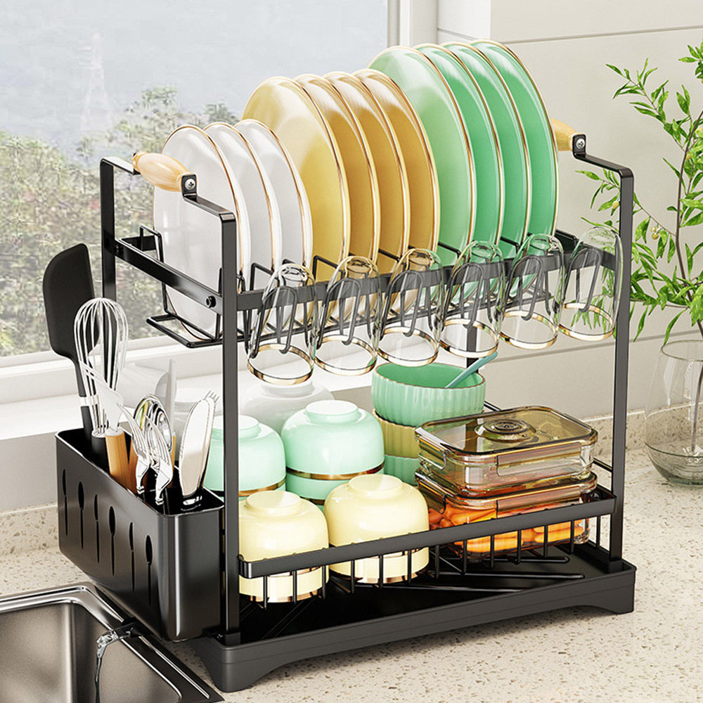 Say goodbye to clutter and hello to a tidy kitchen with this versatile dish drainer! A real lifesaver, it holds all your dishes, bowls, and even knives in one handy spot. Made from sturdy carbon steel, it boasts a strong bearing capacity and long-lasting performance. Moreover, the drainer tray features a rotatable, adjustable drainage pipe for controlling both drainage time and direction, keeping your countertop clean and dry. With its detachable design, it is easy to assemble and clean. It fits perfectly on countertops, making it ideal for kitchens. Dimensions: H42 x W42 x D30cm.