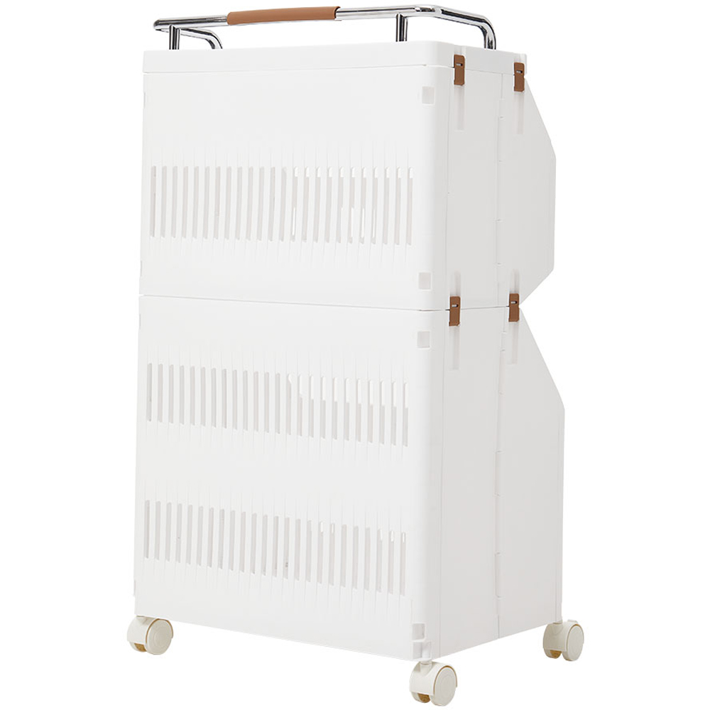 This laundry cart merges beauty with functionality, perfect for home organisation. Its open design allows for easy access to needed items anytime. The spacious top tray can effortlessly accommodate various daily items. Featuring a two-tier design, it enables categorised storage, providing ample space. Equipped with lockable swivel wheels at the bottom and a top handle, it can be moved flexibly around the house. Beyond clothes, it can store toys, books, etc., keeping rooms tidy and orderly. Dimensions: 72 x 40 x 30cm.