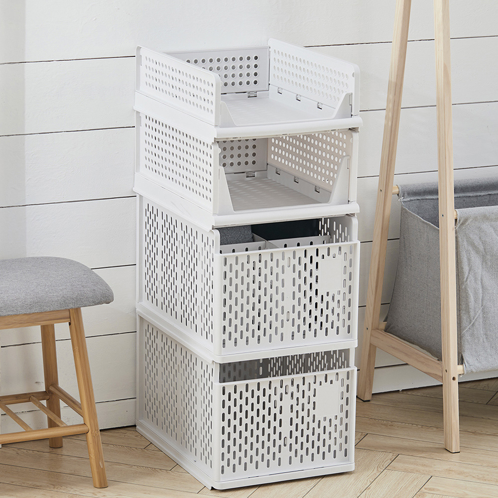 Maintain a neat and organised living space with the Living and Home 20L Foldable Storage Basket. This spacious basket is specifically crafted to seamlessly integrate into your wardrobe or cabinet, providing a systematic storage solution for your belongings. Constructed from durable, BPA-free plastic, it is not only easy to maintain but also provides a secure housing for your items. Its collapsible design allows for convenient storage when not in use. The stackable feature efficiently utilises vertical space, making it an ideal choice for maximising storage. Simple assembly involves snapping the side walls into place and the glide rail ensures easy access to your items.