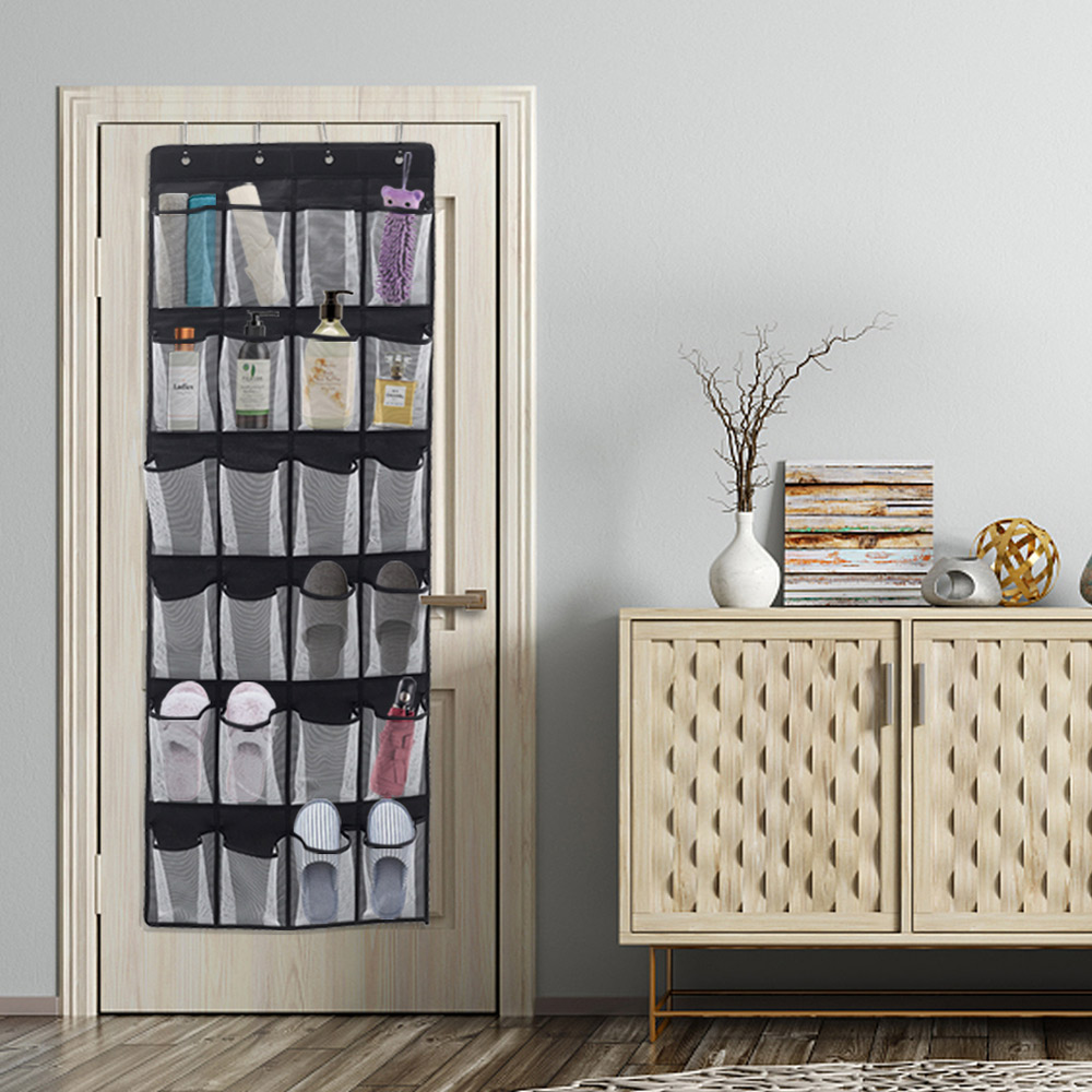 Enjoy the convenience brought by this Living And Home 24 Pocket Fabric Over The Door Hanging Storage Organiser with Hooks. Designed to be hung over any standard-sized door, the bag provides you with handy and easy access to your everyday items. With 24 pockets, you can have plenty of space to store a variety of items that you need daily, such as shoes, socks, scarves, belts, jewellery, toys, and more. Better yet, the mesh fabric of the pockets allows for air circulation and easy visibility of the contents of each pocket.