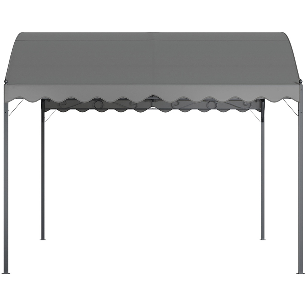 Create extra space for dining, socialising and relaxing with the Dark Grey Waterproof Metal Arched Pergola. This pergola has a timeless appearance that provides structural stability and allows rainwater to flow easily off. The polyester shade offers good privacy and shade, giving the ideal setting for all your outdoor activities. The elegant arched design with scrolling embellishments provides an aesthetic touch. It is also supported by metal posts and beams. The installation of this pergola is simple, thanks to the assembly instructions and hardware included.