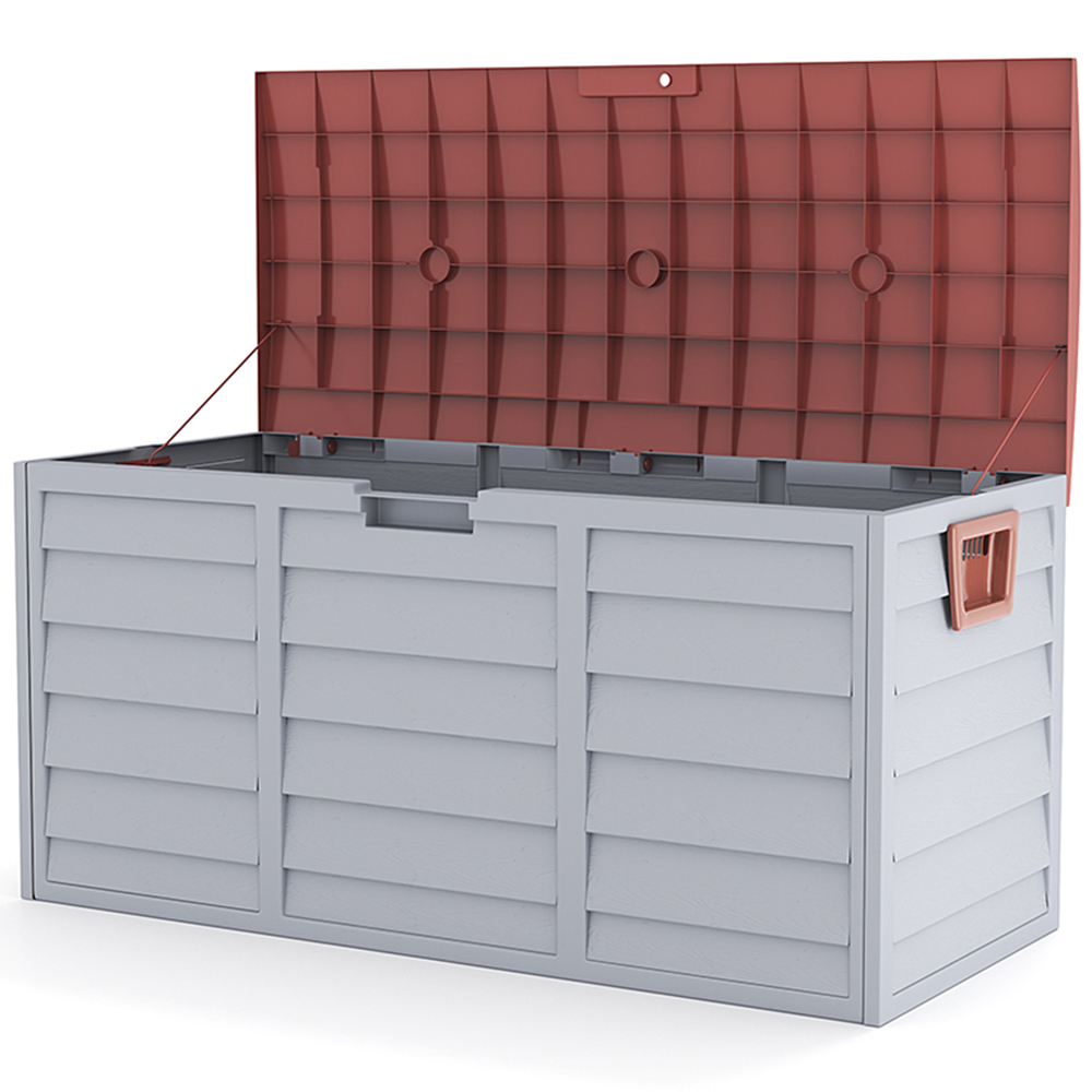 Keep gardening tools and pool maintenance supplies neatly stored and out of sight with this elegant deck box. Designed with a louvred exterior and a wood-textured lid, it adds a touch of rustic charm while offering generous storage space for all essential outdoor items. Constructed from premium materials, this deck box is built to withstand the elements, featuring weather-resistant and UV-protected properties for long-lasting durability. Please note that this weatherproof storage box is designed for storage purposes only and is not recommended for sitting.