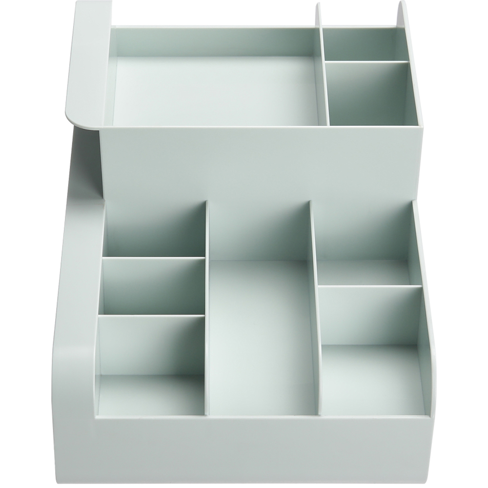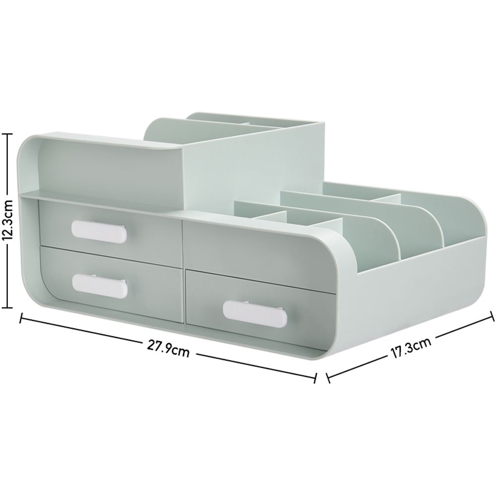 With this handy organiser, your desk stays tidy. Thanks to three large drawers and nine compartments, all office materials find their place here and can be found quickly when you need them. Crafted with plastic material and thanks to the high-quality workmanship, the organiser is particularly durable and easy to maintain. Available in white, green, and pink. Come ready to use, no assembly required.