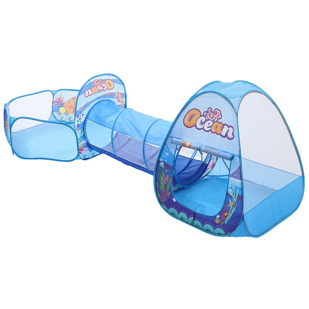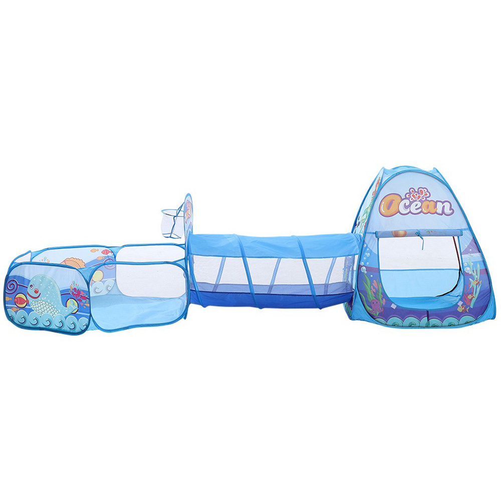 Let your little ones create their adventures with this Living and Home 3 in 1 Kids Pop Up Play Tent Set. This three-piece play tent set provides endless hours of fun and makes children's eyes shine with glee. Featuring a 3 in 1 design, the sections can be used together or separately. The set is made of quality and safe polyester fabric, 100% harmless for kids, and carries a distinctive self-erecting design to add lively vibes to the indoor space. Thanks to its pop-up function, you can set it up quickly. With a ball pit, a basket hoop, a triangular tent and a short tunnel, your child can exercise, crawl and rest in the play set. When you are going on a vacation with the family, you can also take the playhouse with you, for it takes up little space.