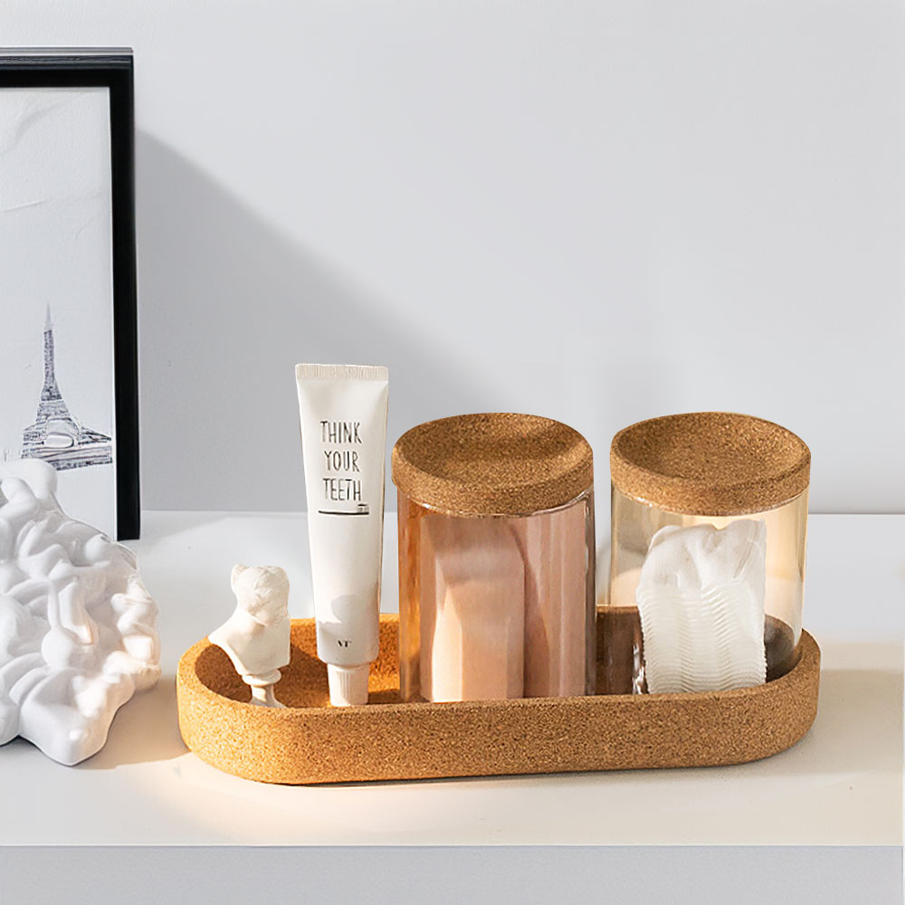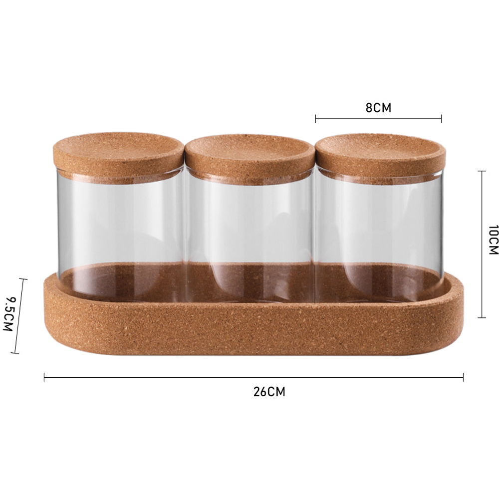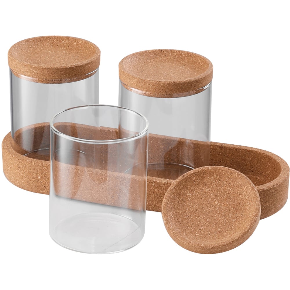 These borosilicate glass jars are perfect for organising all kinds of small items in a neat and elegant manner. The jars feature thickened walls that ensure they will not break easily and the crystal-clear body also adds a touch of beauty. You can fill the jars with a variety of snacks and other necessities like candies, dried fruits, chocolate, and earrings, keeping them separate and easily accessible. The cork wood lids and sturdy base protect both the contents and your kitchen countertops. Available in a set of three, they make a practical and stylish addition to your storage solutions.