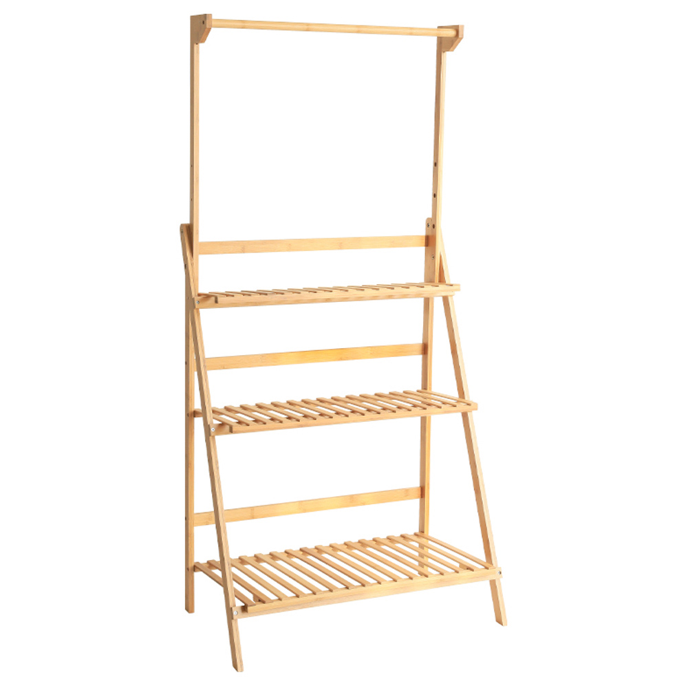 Showcase your botanical treasures in all their splendour with this Wooden Ladder Shelf with a Hanging Rod from Living and Home. Embracing a minimalist aesthetic, this ladder shelf exudes a refined simplicity that perfectly complements a range of plants, effortlessly blending with the natural surroundings. Whether adorning your indoor sanctuaries or outdoor spaces, this exquisite piece will undoubtedly bring you immense joy. Noteworthy is its prominent hanging rod, designed to beautifully display your most captivating plants. It features a foldable design for easy storing and carrying.