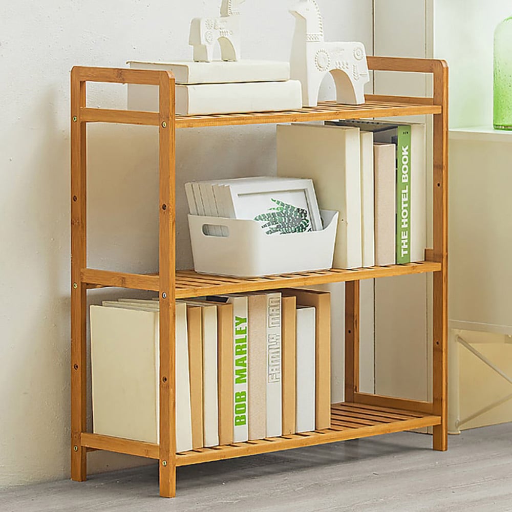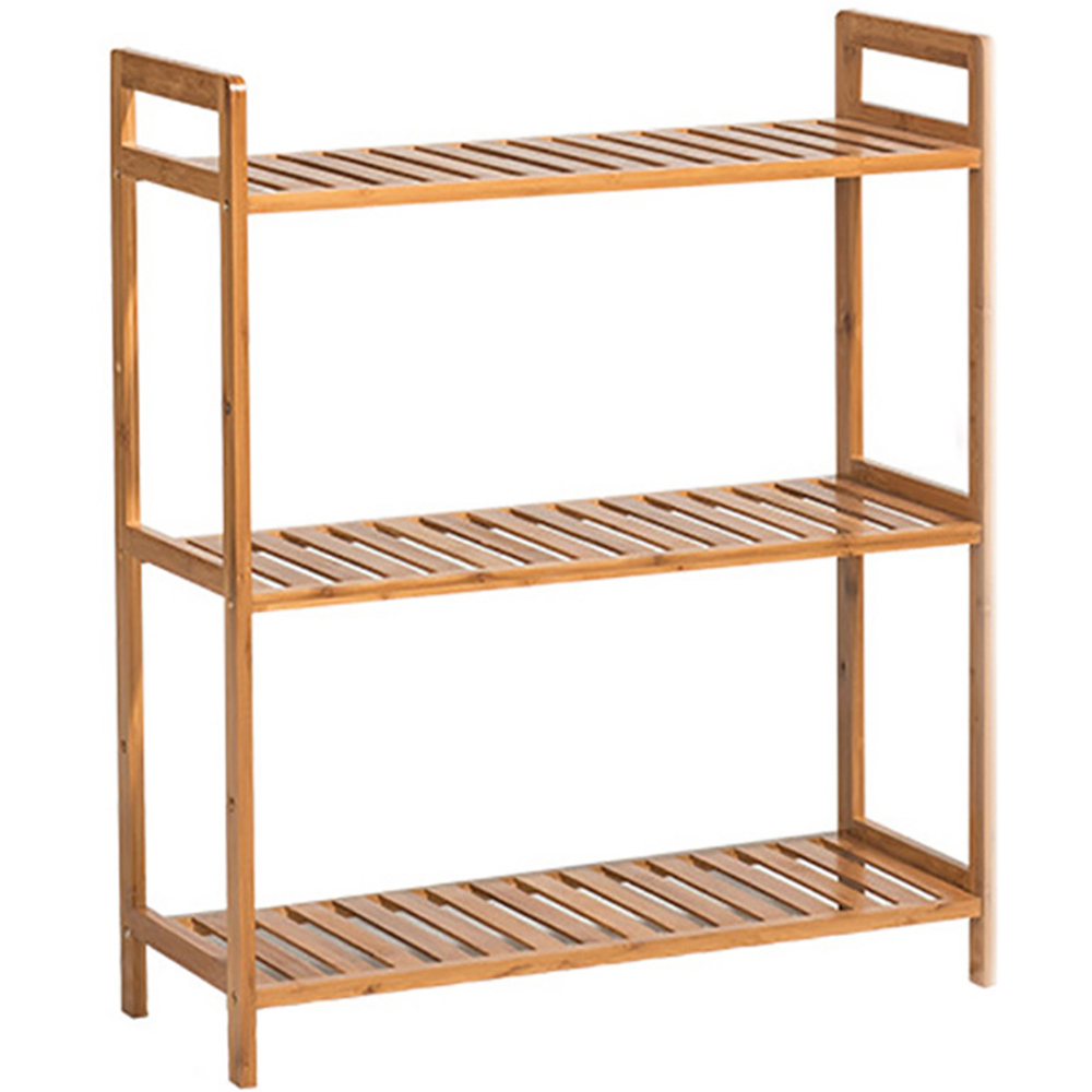 Upgrade your living space with the Living and Home Multi-Tiered Natural Bookshelf, a perfect blend of minimalism and rustic charm. This bookshelf is not just a piece of furniture; it's an instant style upgrade that adds a modern flavour to your living space. Crafted from high-quality bamboo, it boasts an openwork silhouette, creating a breezy and contemporary look. The multi-tiered bookshelf, designed with functionality in mind, offers exceptional performance when it comes to storing and displaying your favourite items. With three spacious shelves, it provides ample space to organize your books, showcase decorative pieces, and proudly display cherished family photos. Not only does this bookshelf excel in aesthetics, but it also stands firmly on the floor, ensuring stability and durability. Thanks to its lightweight construction, you can effortlessly transport and reposition it as needed, allowing you to easily adapt your interior design layout. The simple yet timeless design of this bookshelf effortlessly complements various home settings, making it a versatile addition to any room. The slatted design not only adds a touch of elegance but also helps keep your items dry and well-ventilated. It's not just a bookshelf; it's a multifunctional piece that can also be used as a stylish plant stand or a convenient storage shelf. Size: 68 x 25 x 71cm.