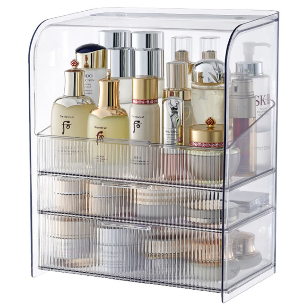 Give your cosmetics and skin care products comprehensive protection with the Living and Home 3 Tier Clear Cosmetic Organiser. This smart and luxurious makeup storage box has a three-tier design that makes it easy to keep your beauty essentials. It features a durable and scratch-resistant construction with a large storage capacity, suitable for high bottles and makeup tools. This organiser has a dustproof and waterproof design with a transparent body that makes all the items clear at a glance. You can keep the box beside the bathroom sink or on your dressing table to add a modern touch to your interior space.