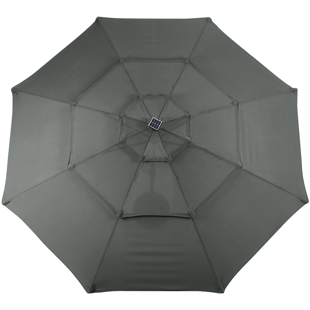 Create your oasis with this three tier Umbrella, an essential outdoor accessory for leisure and work alike. Crafted with a multi-layer structure and resilient, weather-resistant materials, this umbrella provides reliable shade in scorching sun or drizzling days. Featuring a convenient push-button tilt and crank mechanism, this umbrella allows for easy adjustment of the angle and height, ensuring your outdoor moments are always in comfort and style.