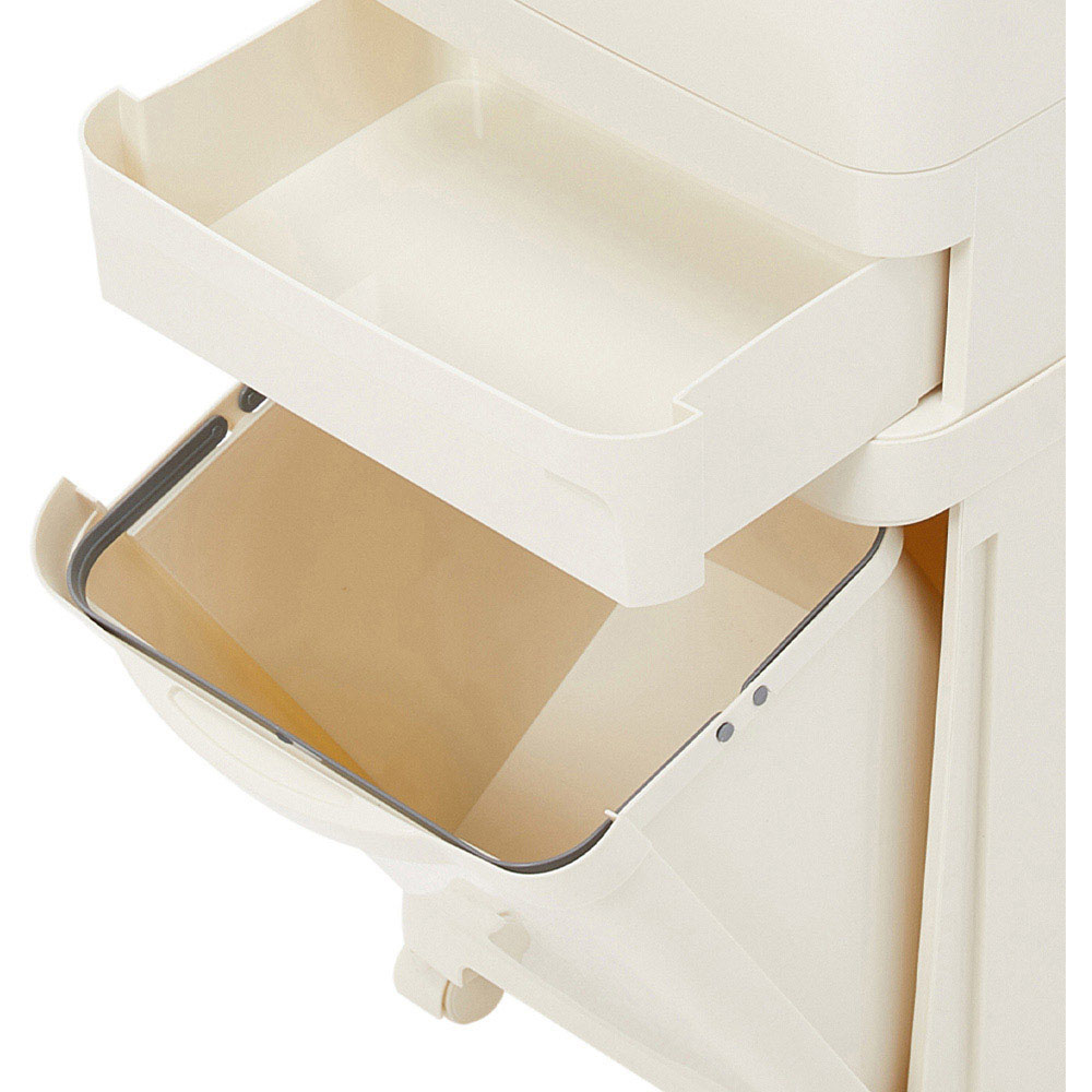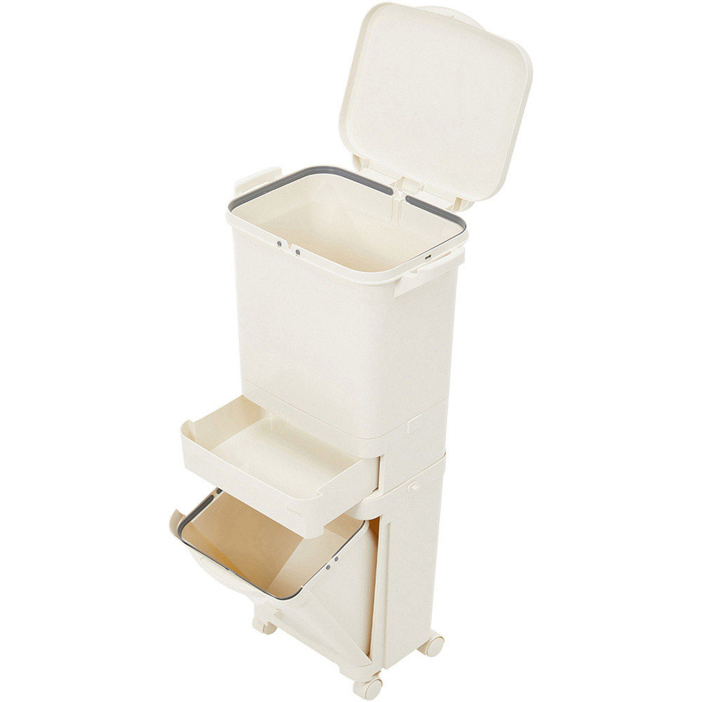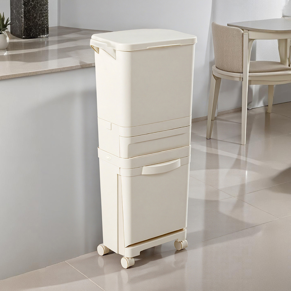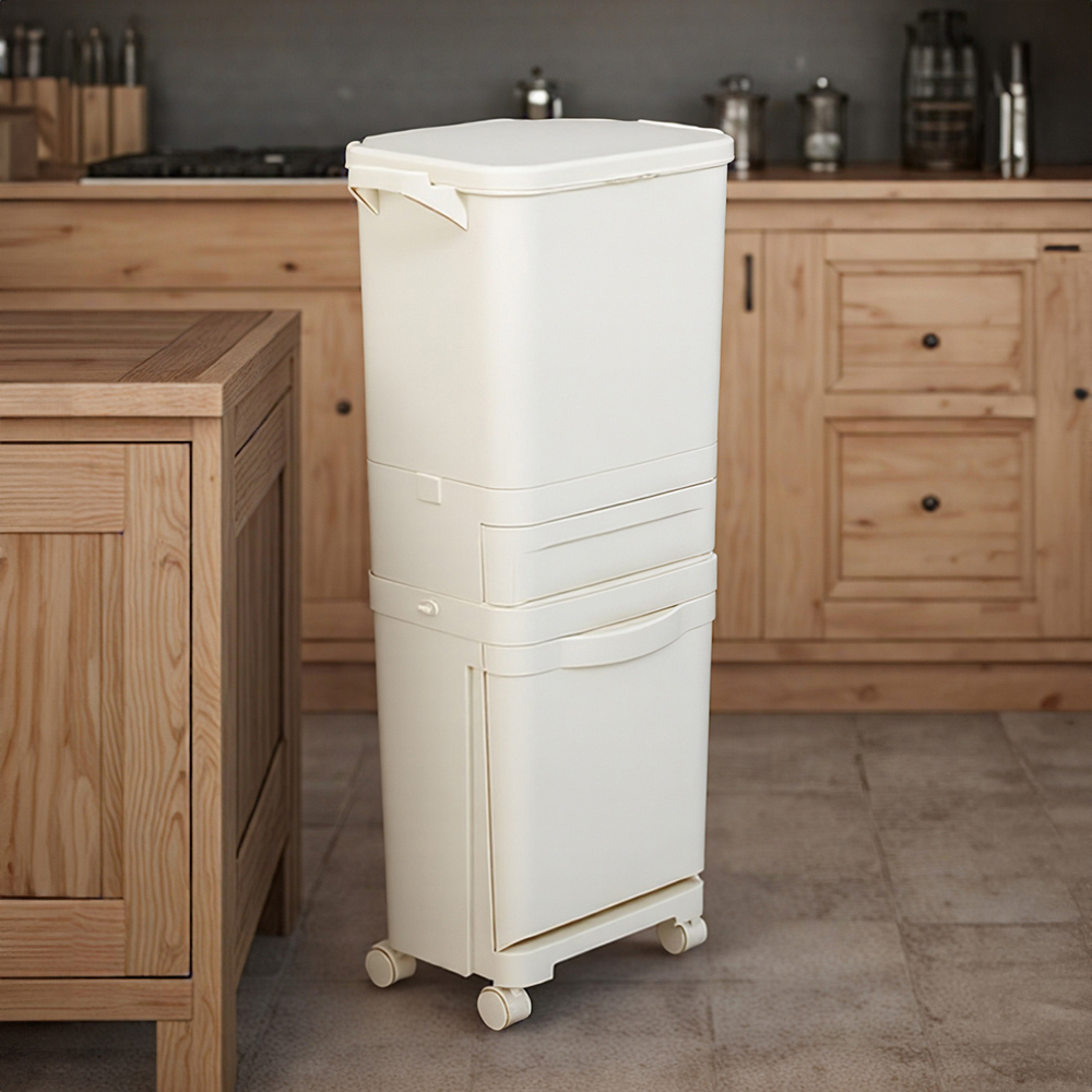 Designed for modern homes, this trash bin is perfect for kitchen waste. With a large capacity design, it easily accommodates a substantial amount of kitchen refuse, reducing the hassle of frequent emptying. The three-tier sorting storage meets the requirements of waste classification and is highly environmentally friendly. The central small drawer conveniently stores garbage bags and other small items within easy reach. Featuring a 45-degree tilted opening at the bottom bin, disposing of garbage is easier, and its detachable design facilitates cleaning. The tightly sealed lid effectively isolates odours, keeping the air fresh. Moreover, its suitable height allows you to discard waste without bending, making usage more convenient.