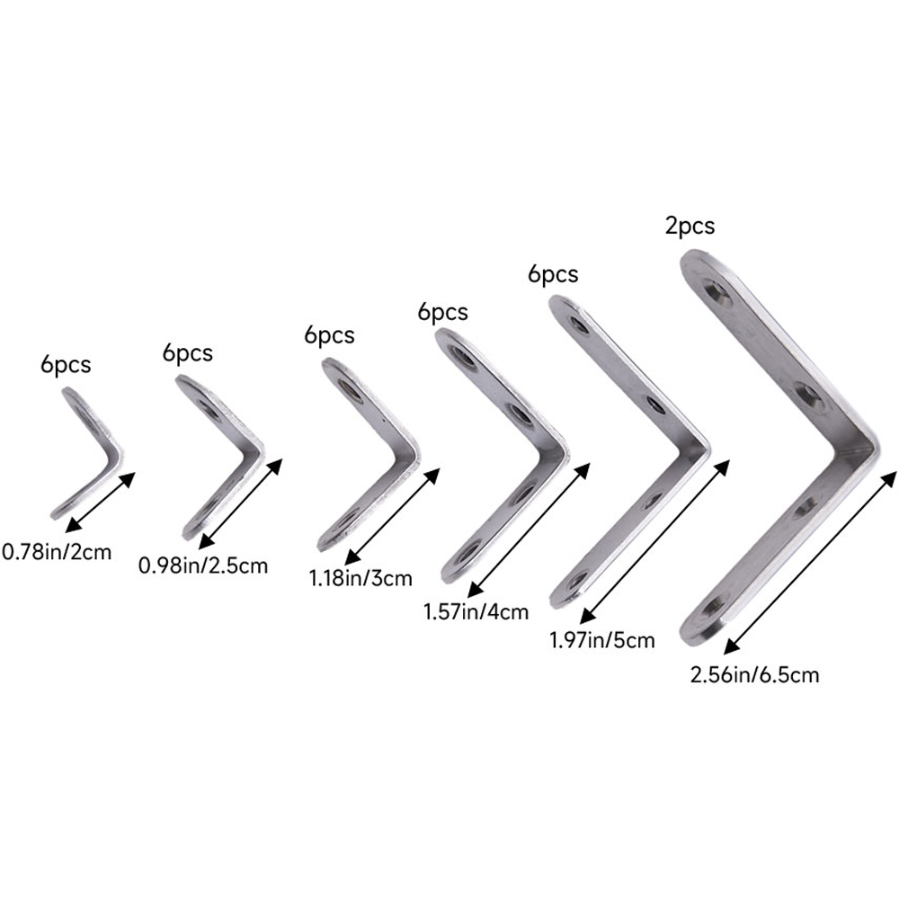 Enhance the stability and strength of your DIY projects with our 32-piece stainless steel L-shaped corner brace set. Designed to provide reliable support for furniture, shelves, and various structures, these L brackets ensure lasting durability and robust performance. Made from thickened stainless steel, they are rust and corrosion-resistant, guaranteeing a long life. Whether you're a DIY enthusiast or a professional, this corner brace set is an essential tool for achieving a secure and sturdy foundation in your work.
