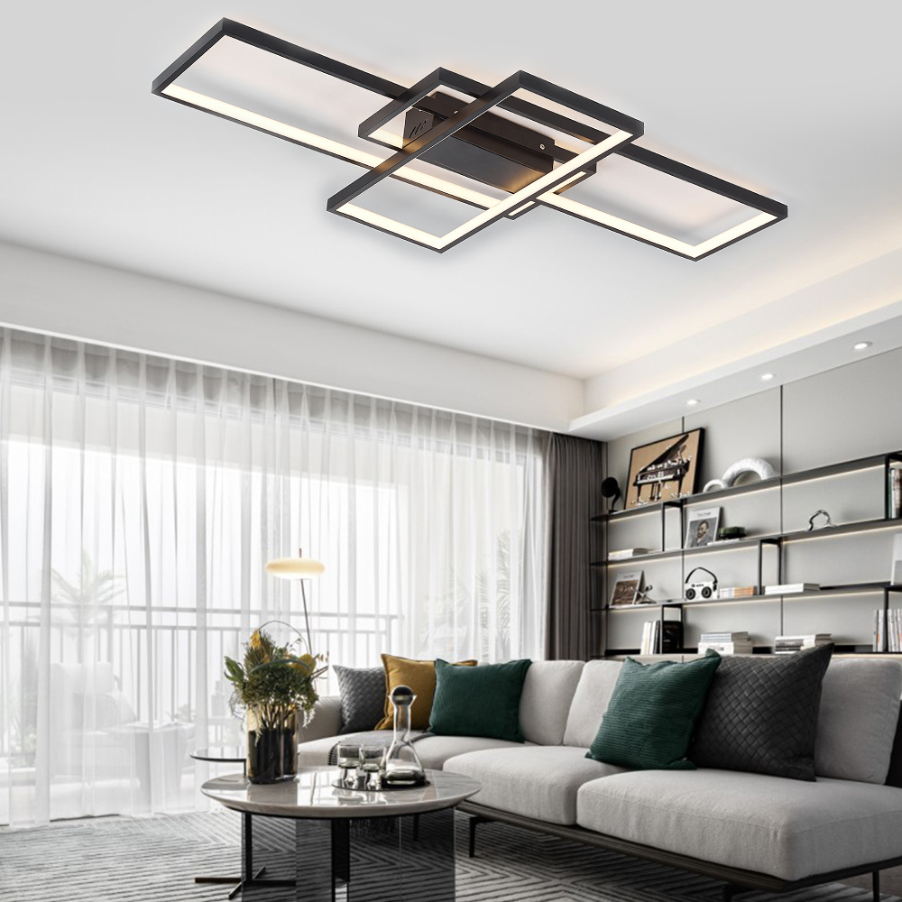 Enhance your living space with the Living and Home 35 inch Black Rectangular Semi-Flush Dimming Ceiling Light with Remote. Featuring a sleek black finish and stacking rectangular frames, it combines solemnity with classic. The acrylic panels tone down the sharp light to create a cosy atmosphere and protect your eyes, which makes it even more ideal for a study. Ideal for industrial-style cafes or minimalist black-and-white décor, this light stands out for its unique blend of classic and playful elements. Crafted from high-quality materials, it ensures long-lasting performance. It is fully dimmable with a remote control, allowing you to adjust the lighting. Please click here to find our range of lightbulbs.