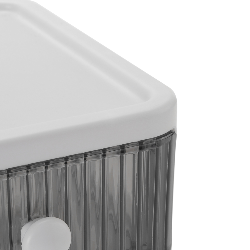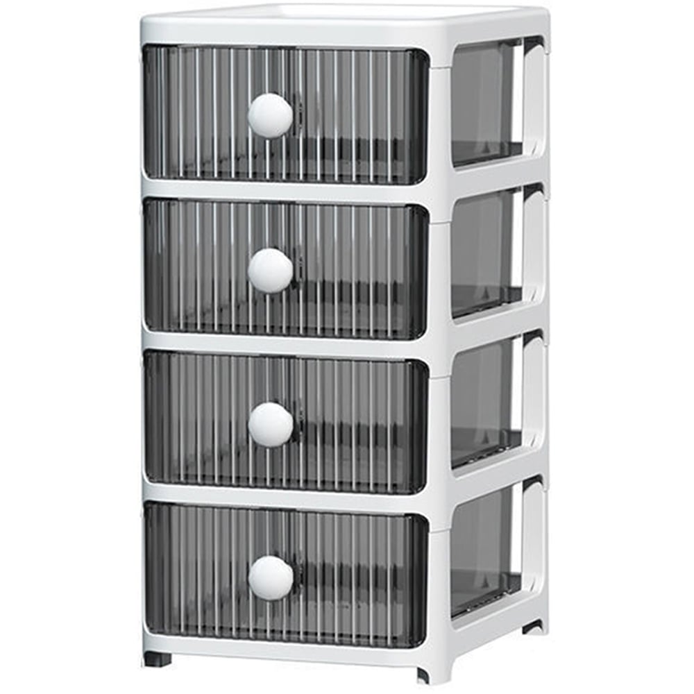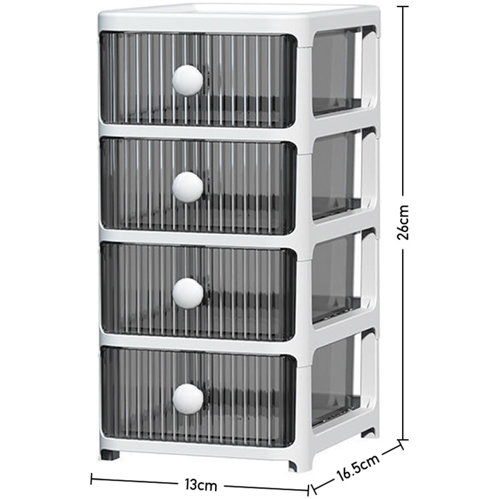 This four-Drawer Transparent Desktop organiser is here to help you regain control over your workspace. Featuring four drawers that have channel fronts and transparent sides, it offers a sleek look while providing ample storage space. It is perfect for accommodating your office supplies, cosmetics, stationery and other small accessories.