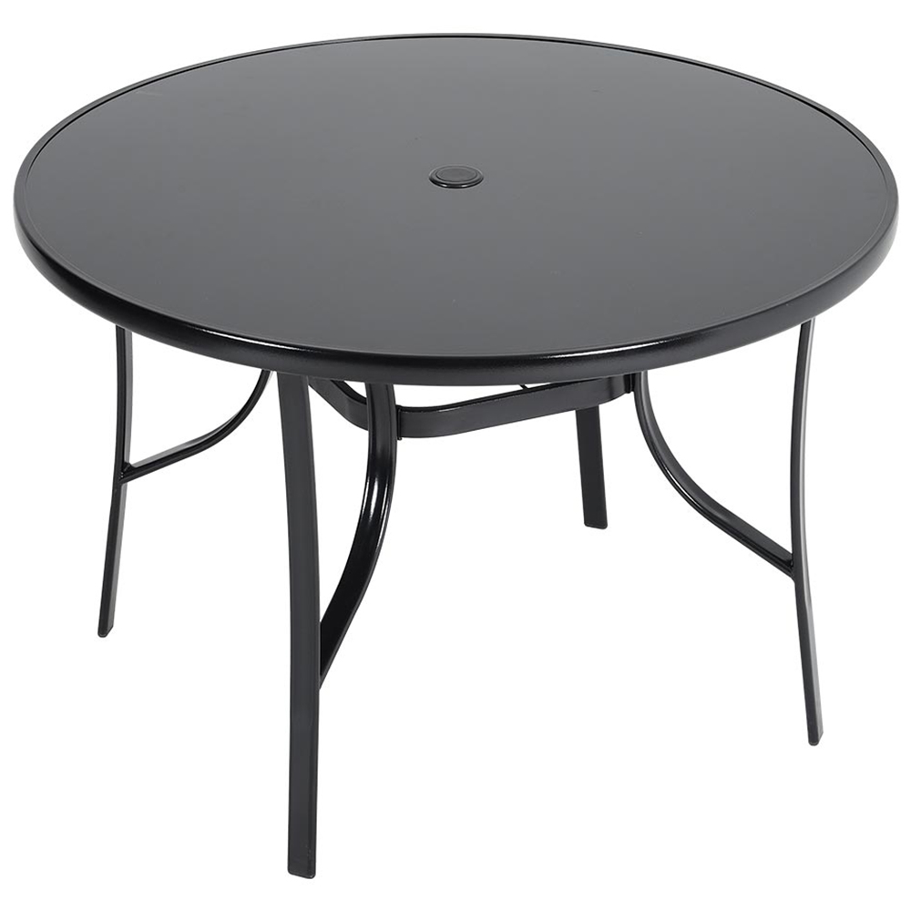 Add a touch of romance to your outdoor gatherings with the Living and Home 4 Seater Round Garden Glass Table featuring a parasol hole. Inspired by traditional wrought-iron furniture, this stylish table enhances any garden or terrace with its classic black design. Built for durability, this table features a well-crafted surface, ensuring long-lasting use in all weather conditions, perfect for both sunny days and drizzly afternoons.