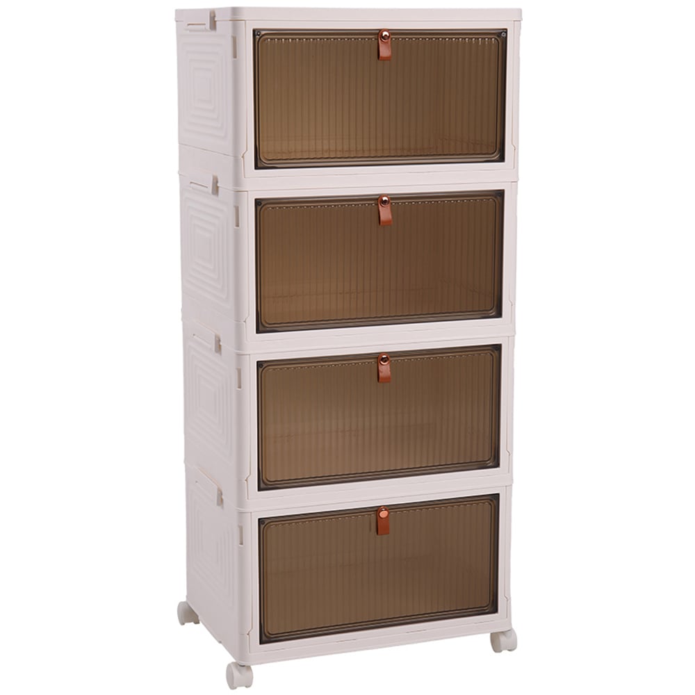 Discover the ultimate shoe storage solution with the thoughtfully designed Living and Home 4 Shelf Foldable Storage Box with Wheels. Constructed from thickened PP material, this robust box ensures exceptional stability and longevity, withstanding daily use without wobbling or compromising its integrity. The chic smoked transparent magnetic door not only adds a modern touch to your decor but also acts as a highly effective dust-proof and moisture-proof barrier, shielding your beloved shoes from the damaging effects of direct sunlight and damp conditions that can lead to mould and ageing. The convenient leather pull tab enhances accessibility, allowing you to effortlessly reach your favourite pairs with ease, making this storage box a perfect blend of style and functionality.