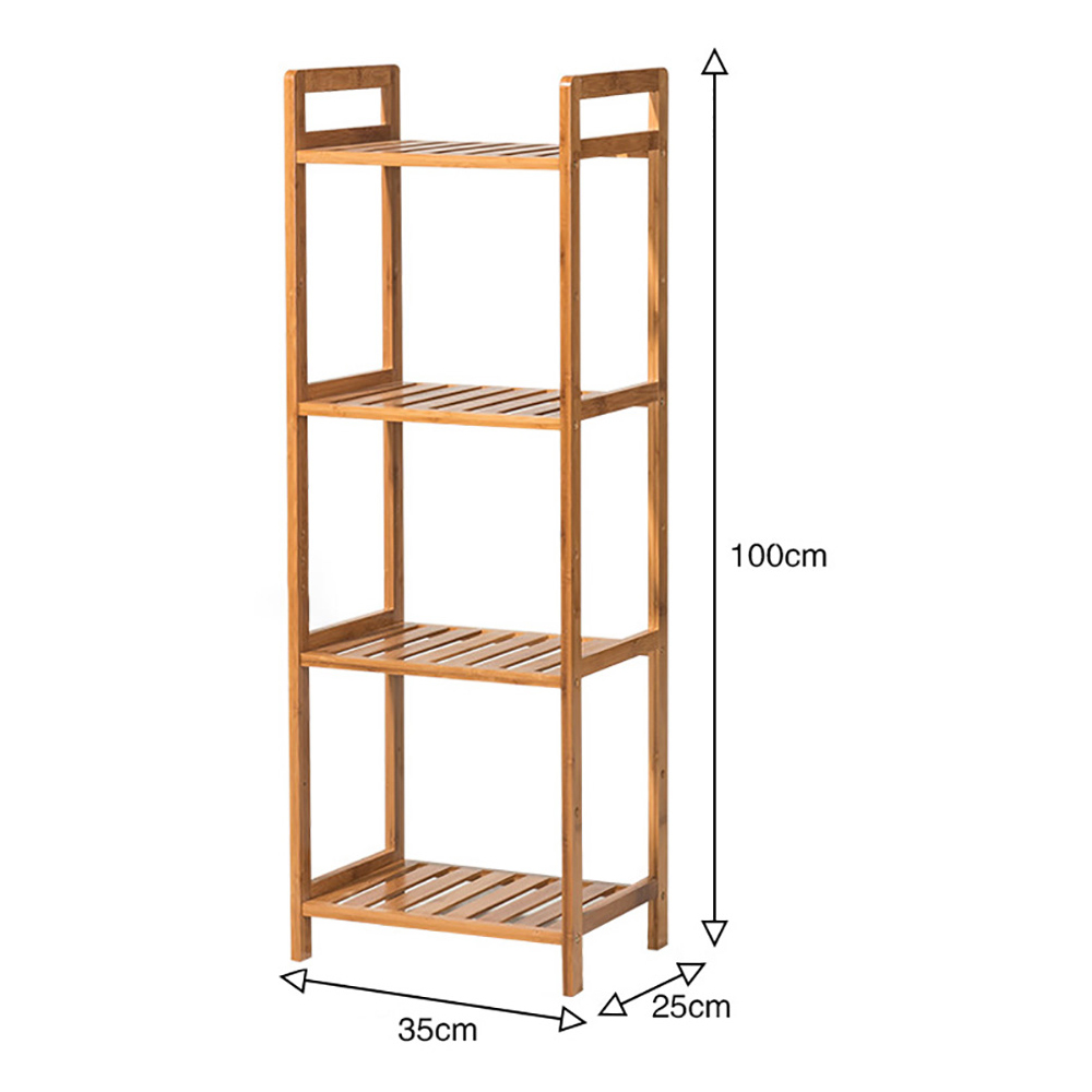 Upgrade your living space with the Living and Home Multi-Tiered Natural Bookshelf, a perfect blend of minimalism and rustic charm. This bookshelf is not just a piece of furniture; it's an instant style upgrade that adds a modern flavour to your living space. Crafted from high-quality bamboo, it boasts an openwork silhouette, creating a breezy and contemporary look. The multi-tiered bookshelf, designed with functionality in mind, offers exceptional performance when it comes to storing and displaying your favourite items. With four spacious shelves, it provides ample space to organize your books, showcase decorative pieces, and proudly display cherished family photos. Not only does this bookshelf excel in aesthetics, but it also stands firmly on the floor, ensuring stability and durability. Thanks to its lightweight construction, you can effortlessly transport and reposition it as needed, allowing you to easily adapt your interior design layout. The simple yet timeless design of this bookshelf effortlessly complements various home settings, making it a versatile addition to any room. The slatted design not only adds a touch of elegance but also helps keep your items dry and well-ventilated. It's not just a bookshelf; it's a multifunctional piece that can also be used as a stylish plant stand or a convenient storage shelf. Size: 35 x 25 x 100cm.