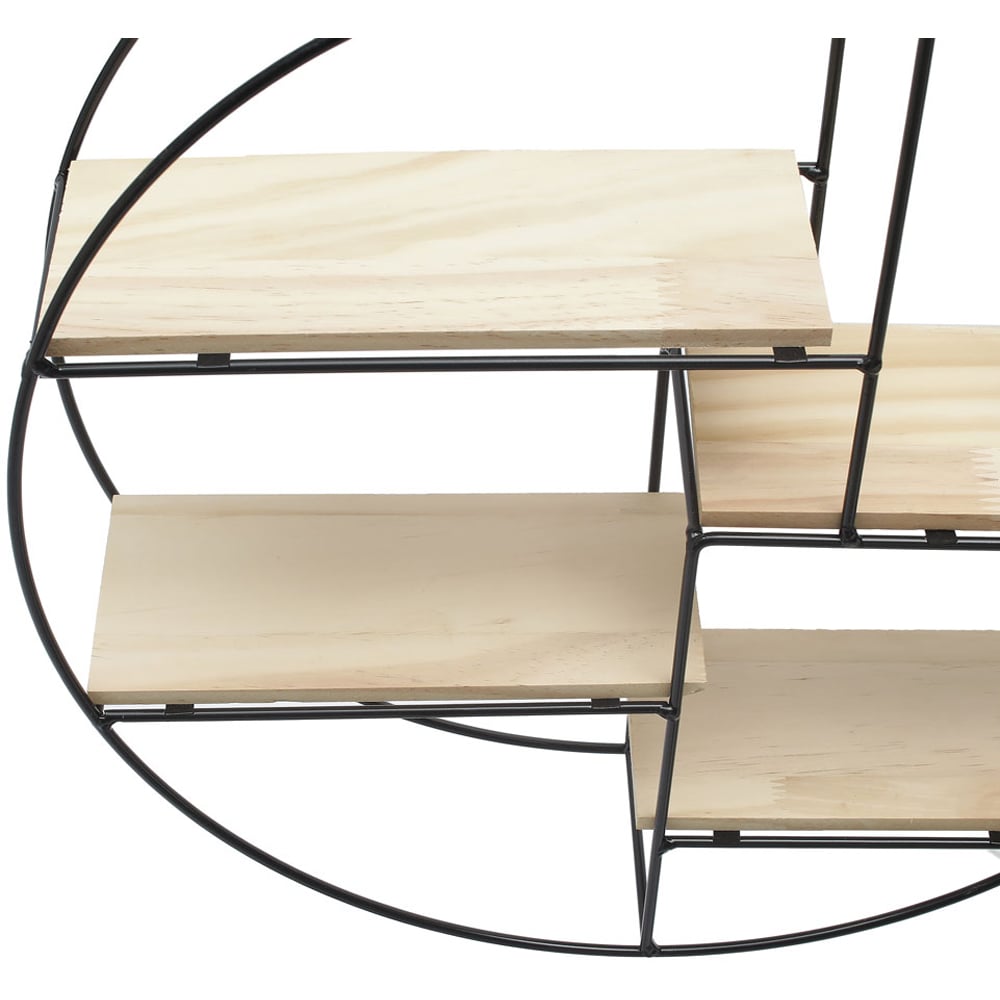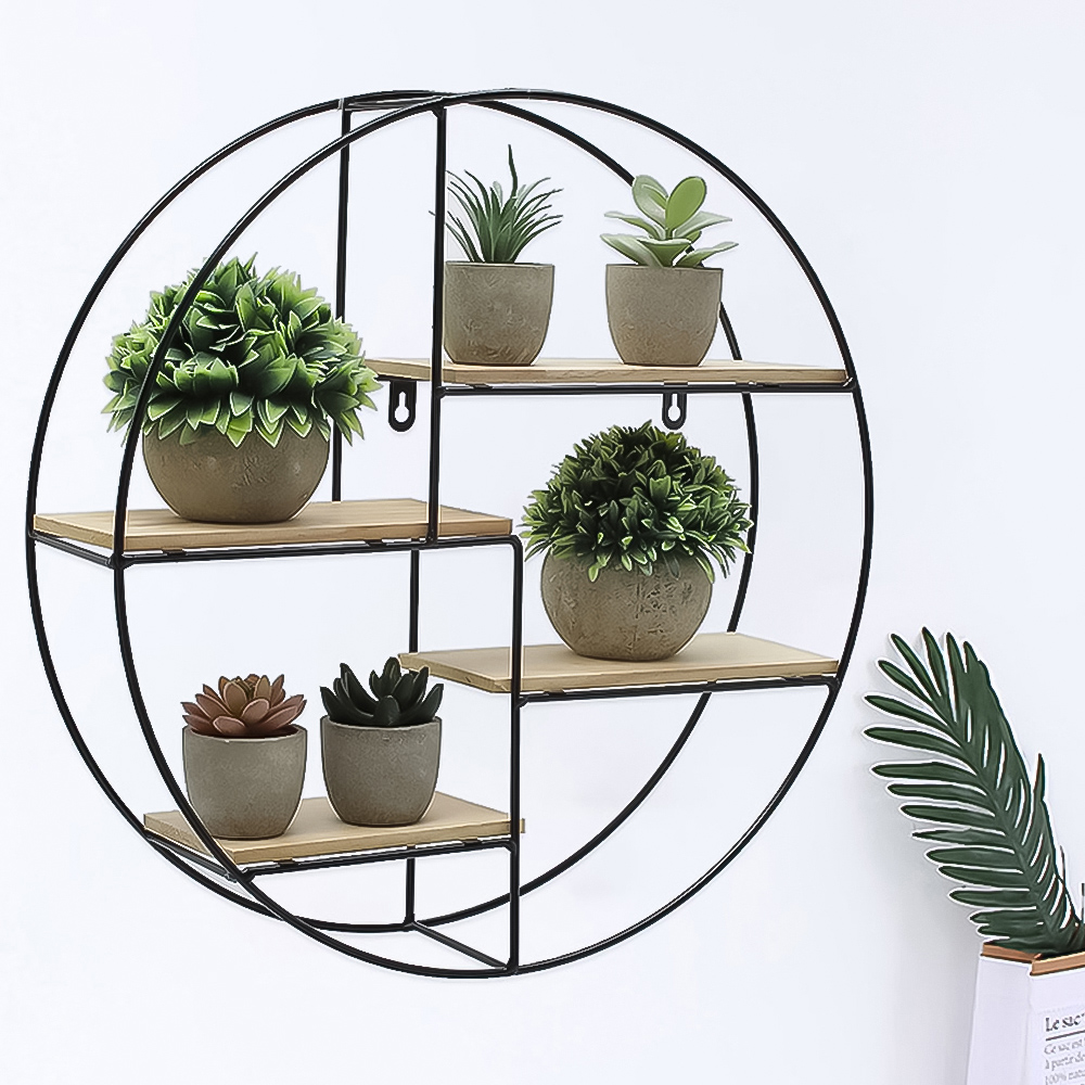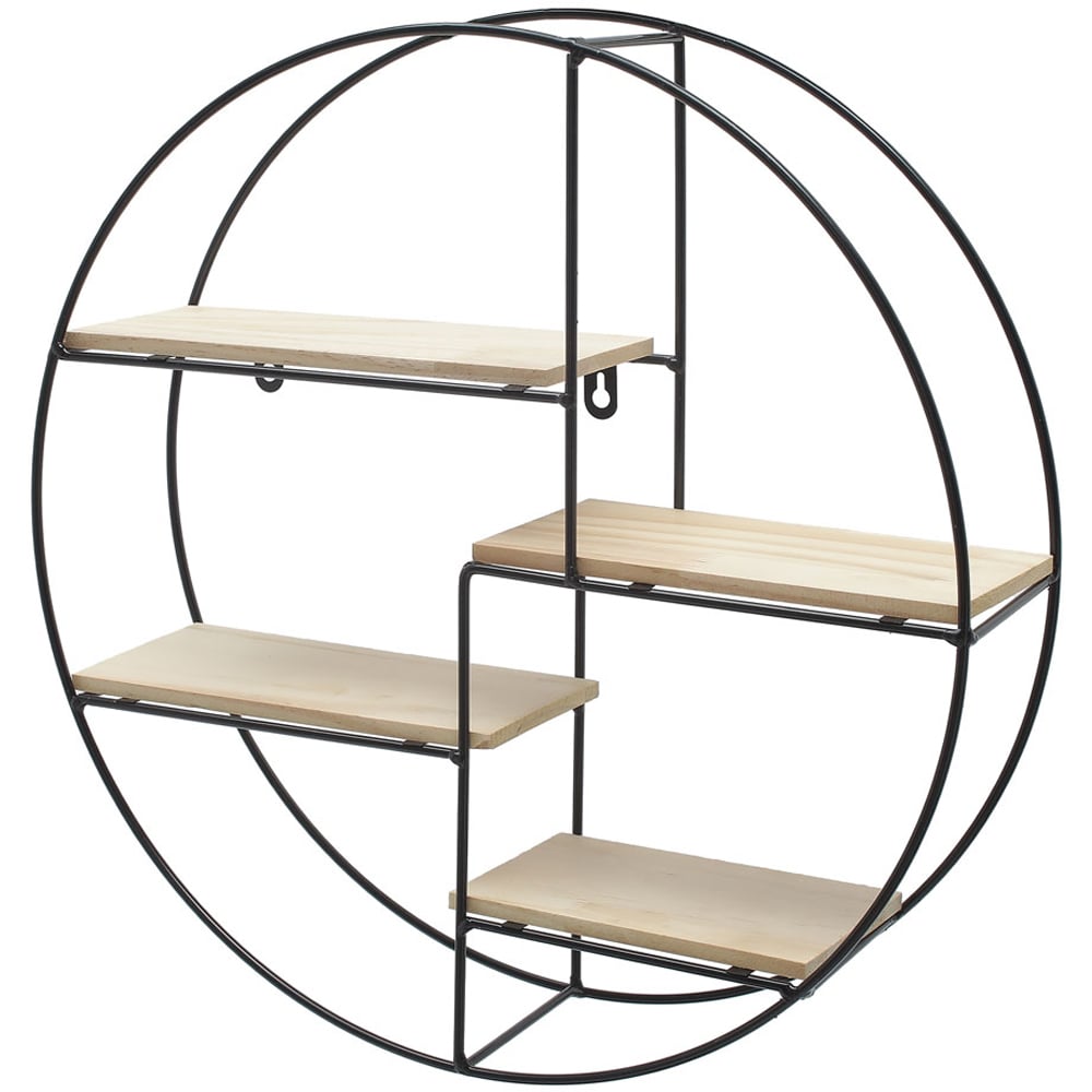 Enhance your living space with this stunning round floating shelf that beautifully blends rustic wood warmth with sleek iron elegance. Featuring a sophisticated black finish, this eye-catching piece serves as a versatile focal point that complements a variety of interior styles. Perfect for displaying small plants, picture frames, books, trinkets, and more, it adds both style and function to any room.