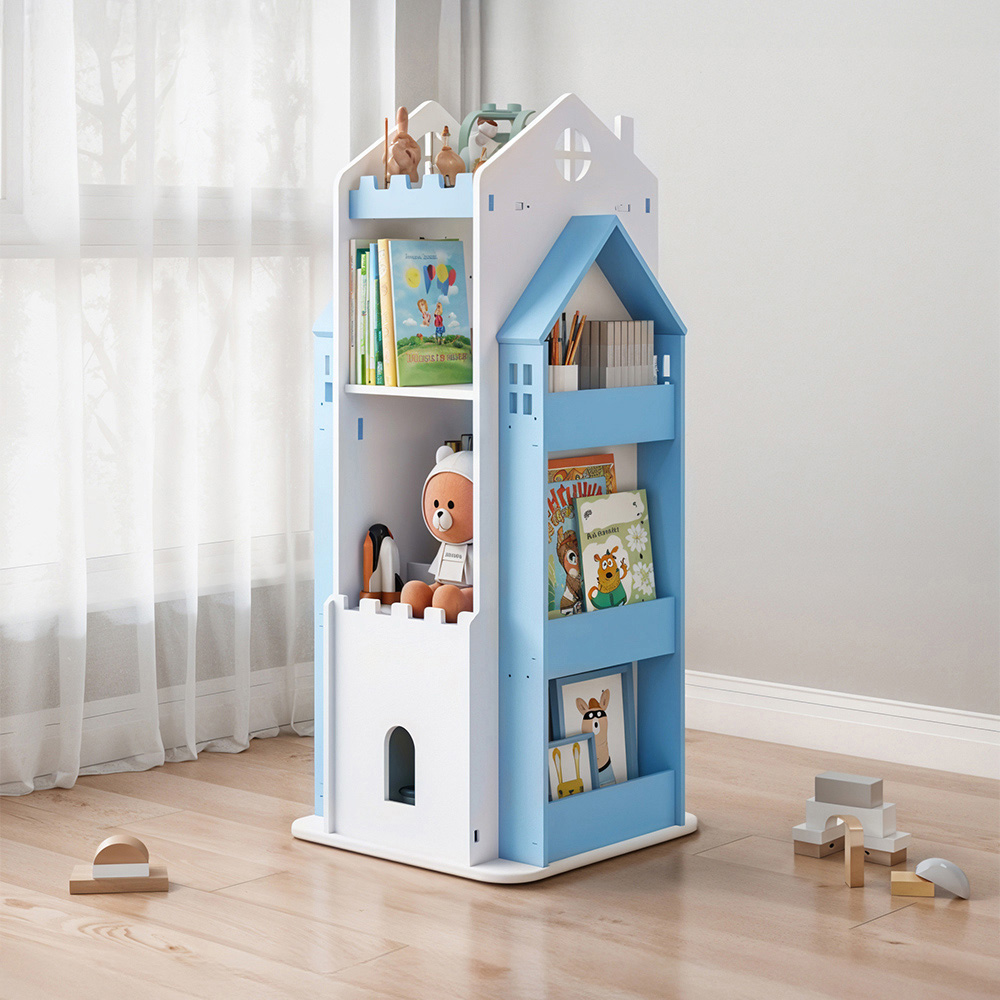 Add a touch of magic to your child’s room with this castle-shaped 4-tier bookshelf, the perfect blend of charm, function, and learning. Designed to spark imagination, this whimsical piece offers plenty of space for books, toys, or even small plants, helping kids learn to organise their belongings with ease. Its unique 360-degree rotating base allows little ones to access their favourites from any side while maintaining excellent stability. Ideal for creating a cosy reading corner, this bookshelf not only encourages early reading habits but also fosters creativity and quality parent-child time. Both a playful decor piece and a practical storage solution, it transforms any space into a world where learning meets fun.