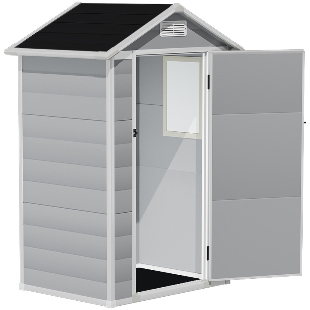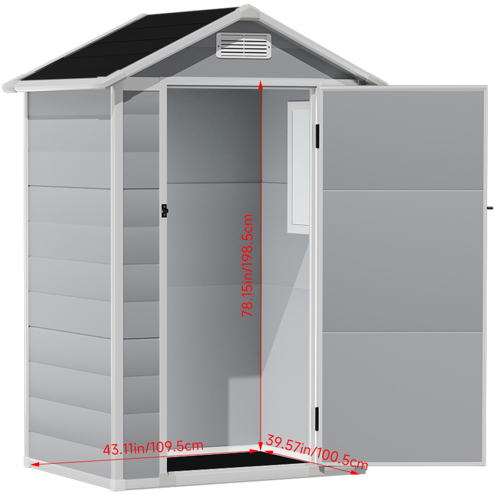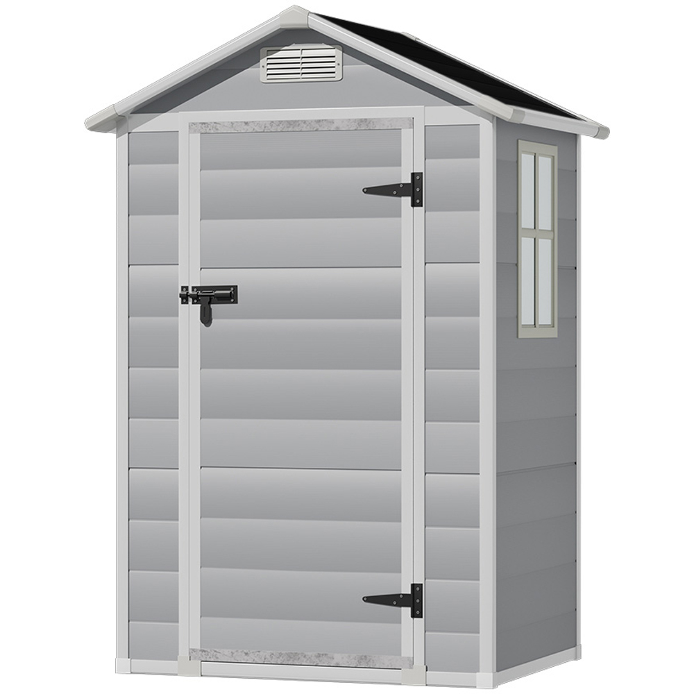 Our multifunctional tool shed is the perfect solution for storing gardening tools and outdoor equipment. With a spacious interior, it accommodates various tools like hammers, spanners, and lawn mowers. Built-in louvered vents and side windows ensure excellent ventilation and lighting, keeping the shed dry and fresh. The sloping roof designvpromotes drainage and cleanliness. Beyond a tool shed, it doubles as a versatile storage space, helping to keep your outdoor and home areas organized. Its sleek, minimalist design effortlessly complements any outdoor decor, adding a touch of elegance.