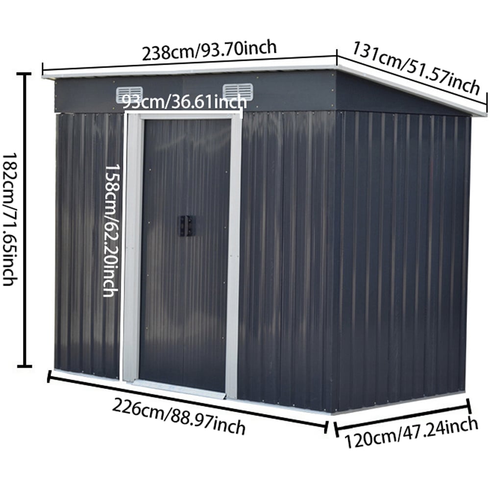 Living and Home 4 x 8ft Black Outdoor Flat Roof Double Sliding Door Metal Shed