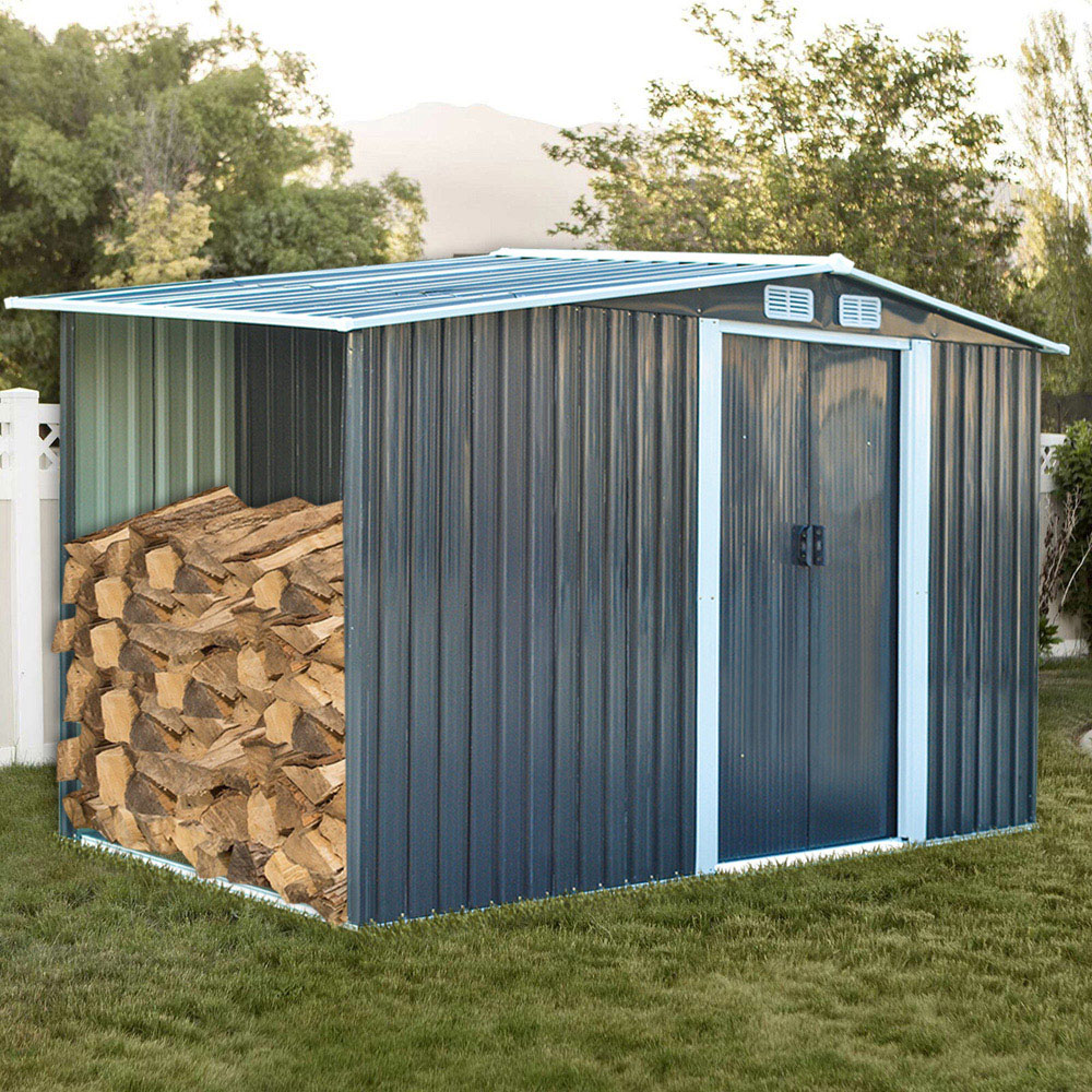 Organize your garden tools and equipment effectively with this Living and Home 4 x 8ft Metal Garden Shed with Log Storage. Crafted from heavy-duty steel, it's robust enough to keep all your tools and equipment well-protected. It also offers an open storage spot so you can store logs conveniently. Large and spacious, there's plenty of space to hold a wide range of garden tools, furniture, and equipment. With this practical shed, you can store your tools and enjoy easy access to them whenever you want.