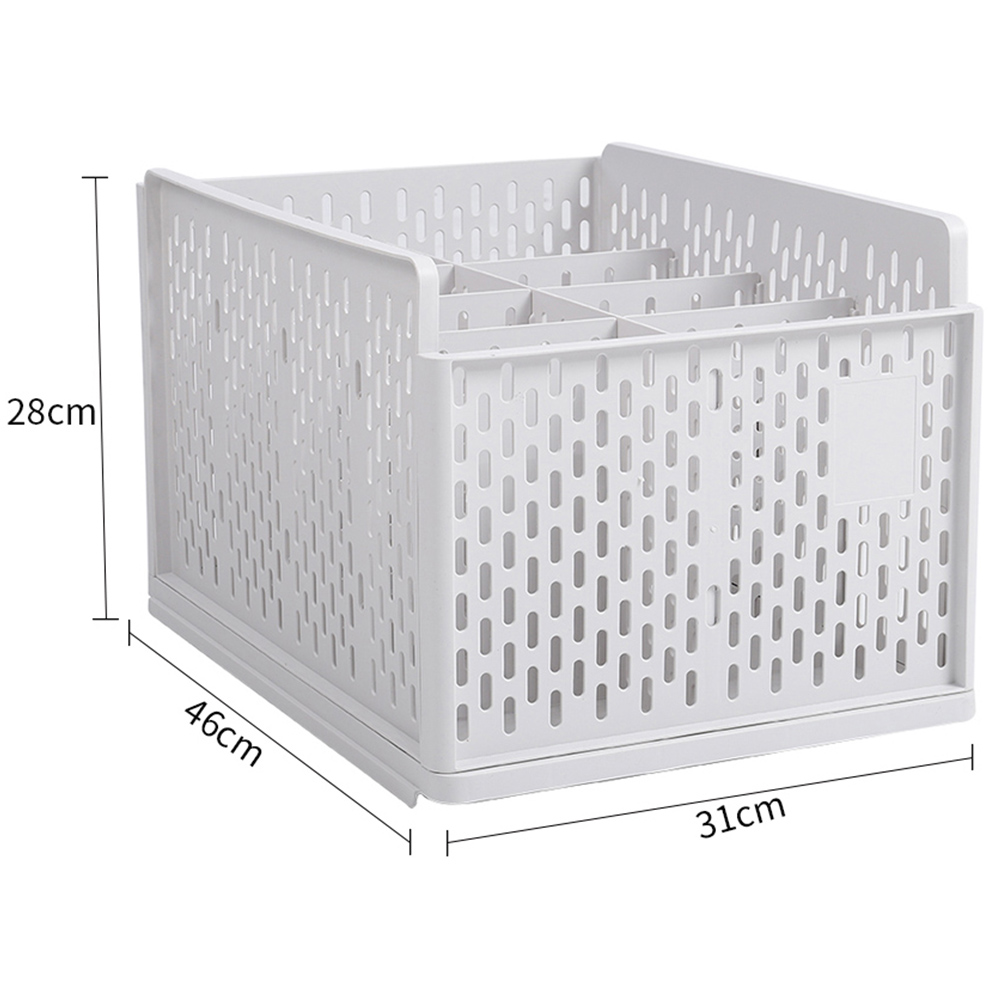 Maintain a neat and organised living space with the Living and Home 46cm Foldable Storage Basket. Featuring eight compartments and a wide opening design, this basket allows you to neatly organise and view your items at a glance. Crafted from durable and lightweight plastic, this basket is designed to fit seamlessly into most standard-sized shelves and cabinets. The detachable sorting dividers provide convenient item classification and the front panel prevents items from falling out. Additionally, you can stack these baskets to efficiently save space and create a personalised organisation system that suits your needs.