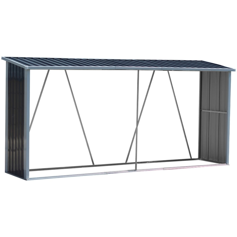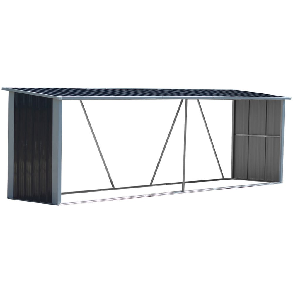 Keep your logs dry and organized using this Living and Home 4.7 x 7.7ft Black Zinc Steel Log Storage Shed. Crafted from zinc steel, this shed is strong, durable, and corrosion-resistant so that it stays sturdy outdoors throughout the seasons. It features crossed support bars on the back to offer reinforced sturdiness and a pent roof to allow water to slide off easily. With a generous storage space, it's an ideal shed for storing and organising all your firewood with ease.