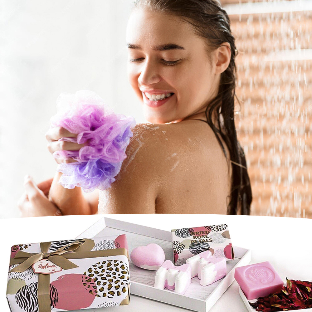 Transform your bathing experience with the Living and Home 5 Piece Rose and Lavender Bath Bomb Gift Set. Packed with emollients and softeners, these bombs will leave your skin feeling soft and silky. Enriched with essential oils and Vitamin E, the bath bombs offer a natural and nourishing solution for your skincare needs. Whether it's been a long day or a strenuous workout, immerse yourself in a bath decorated with rose petals and let the soothing fragrances rejuvenate you. The products are cruelty-free, vegan-friendly, and crafted from organic ingredients. Whether it's a birthday, Mother's Day, Christmas, Thanksgiving, or an anniversary, the bath bomb gift set makes the perfect present.