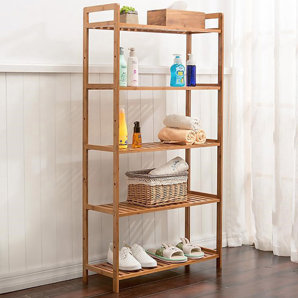 Upgrade your living space with the Living and Home Multi-Tiered Natural Bookshelf, a perfect blend of minimalism and rustic charm. This bookshelf is not just a piece of furniture; it's an instant style upgrade that adds a modern flavour to your living space. Crafted from high-quality bamboo, it boasts an openwork silhouette, creating a breezy and contemporary look. The multi-tiered bookshelf. designed with functionality in mind, offers exceptional performance when it comes to storing and displaying your favourite items. With five spacious shelves, it provides ample space to organize your books, showcase decorative pieces, and proudly display cherished family photos. Not only does this bookshelf excel in aesthetics, but it also stands firmly on the floor, ensuring stability and durability. Thanks to its lightweight construction, you can effortlessly transport and reposition it as needed, allowing you to easily adapt your interior design layout. The simple yet timeless design of this bookshelf effortlessly complements various home settings, making it a versatile addition to any room. The slatted design not only adds a touch of elegance but also helps keep your items dry and well-ventilated. It's not just a bookshelf; it's a multifunctional piece that can also be used as a stylish plant stand or a convenient storage shelf. Size: 50 x 25 x 128cm.