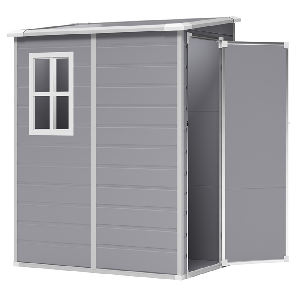 Ensure all your outdoor tools and equipment are securely stored and well-organised with the Living and Home 5 x 4ft Grey Plastic Garden Tool Shed. Crafted from sturdy and durable plastic, this shed is built to withstand the harshest weather conditions while providing long-lasting performance. The inclusion of a window allows natural light to brighten up the interior, making it easier to locate your tools. It's cleverly designed with a floor and a pitched roof, which helps to prevent water from accumulating, ensuring effective drainage. Additionally, the shed comes with a lockable feature to keep your belongings secure. Its compact and practical design makes it the perfect addition to any garden or outdoor space.