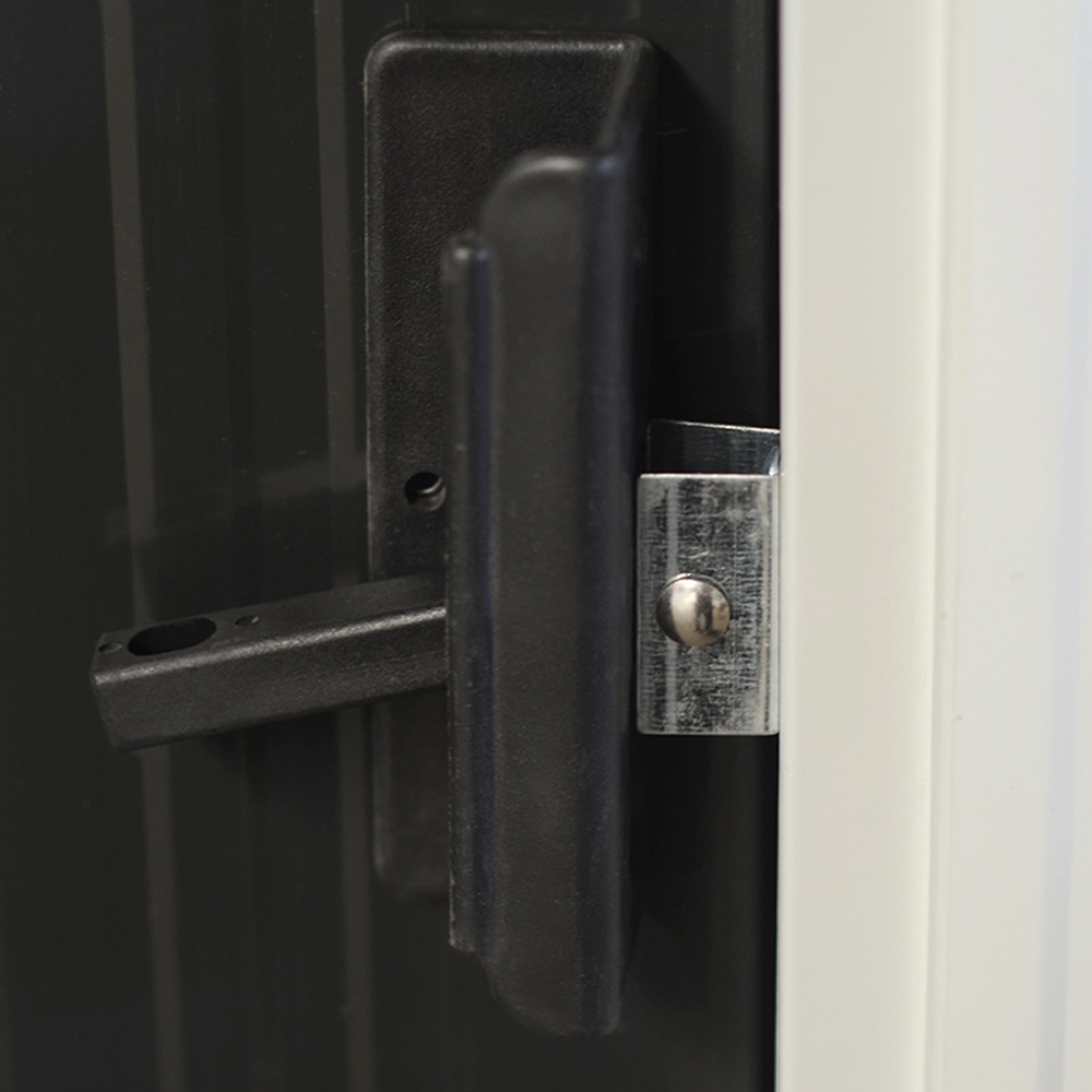 Organise your outdoor tools and supplies with this innovative metal tool shed featuring a sloped roof design. Aesthetically appealing and practical, the single-slope roof optimises space and can be placed snugly against walls. This design prevents rainwater pooling, effectively reducing rust risks and ensuring durability in all weather conditions. Whether you need storage for tools, plant care items, or a small workspace, this shed meets all your outdoor storage needs with elegance and efficiency.