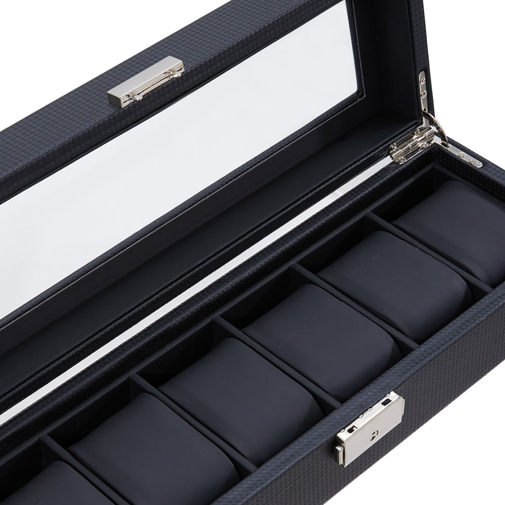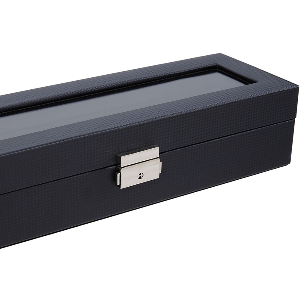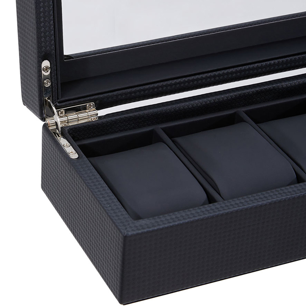 Constructed from waterproof, textured leather and robust MDF, this display case serves as an ideal storage or display solution for your luxury watch collections. Its lid features a transparent glass cover, granting viewers an opportunity to admire every intricate detail of your timepieces. With a PU leather lining, the box guards against scratches and bumps, while the thick foam padding ensures the watches maintain their shape. The understated design provides a high-end backdrop that accentuates the delicacy of each individual watch.