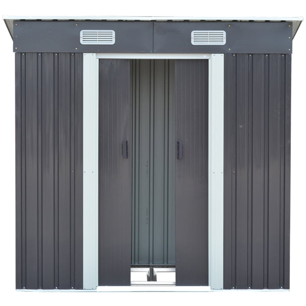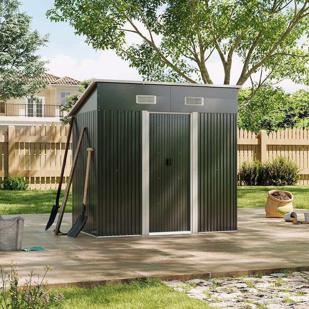 Living and Home 6 x 4ft Black Outdoor Flat Roof Double Sliding Door Metal Tool and Storage Shed