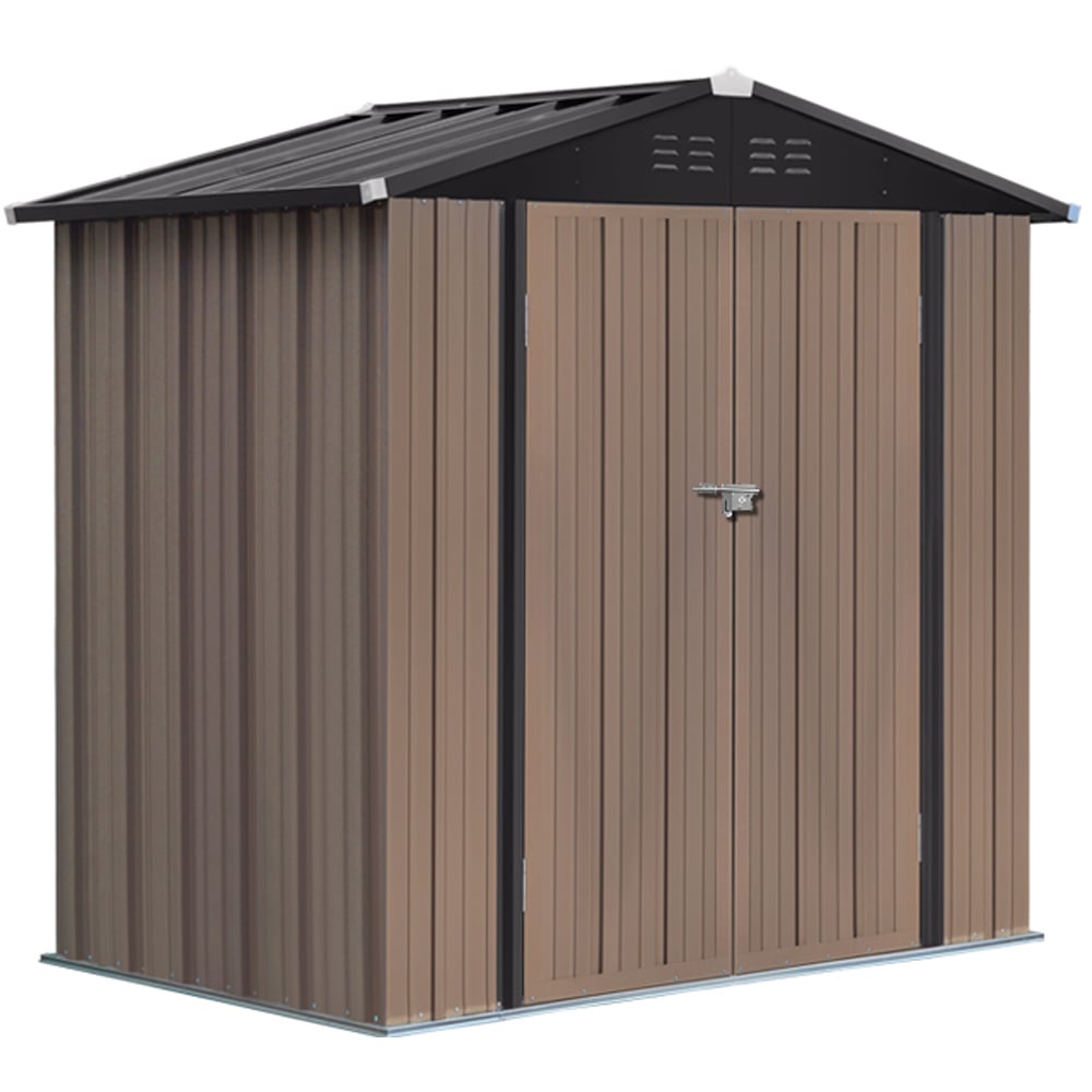 With its brown and black finish, this shed adds a touch of rural charm to your outdoor space. Equipped with four vents, it ensures optimal airflow and ventilation for your tools. The apex rooftop is designed to prevent rainwater accumulation, protecting the metal structure from damage. This tool shed is the ideal addition to any garden, offering both style and functionality.