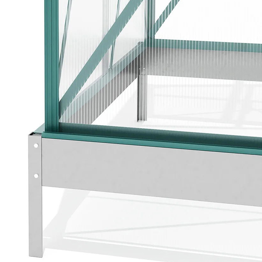 Built with a superior aluminium frame, this practical greenhouse offers a sturdy and upright structure. The semi-transparent polycarbonate panels allow you to monitor your plants with ease. To maintain an optimal internal environment, the greenhouse is equipped with a window opening for improved airflow. The included base ensures proper drainage and better ventilation, preventing water accumulation beneath the structure. This greenhouse is the perfect addition for any plant enthusiast.