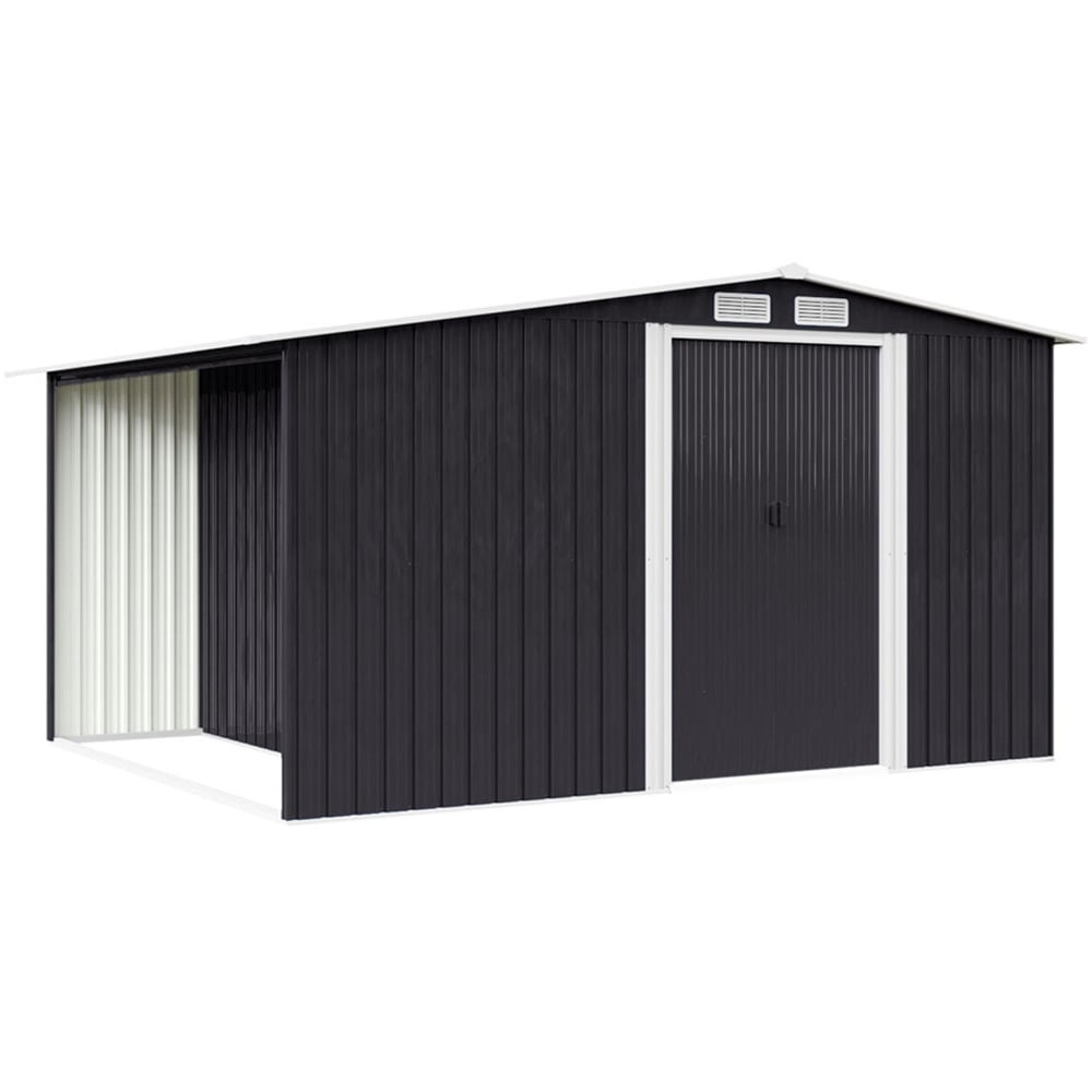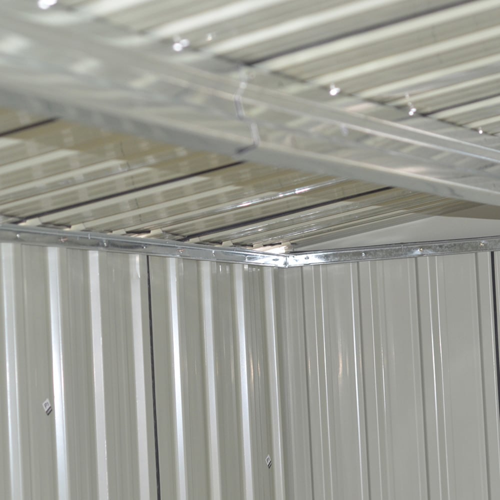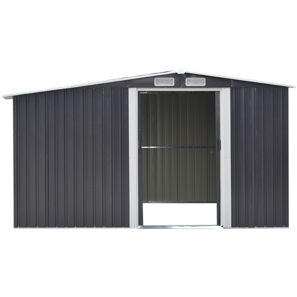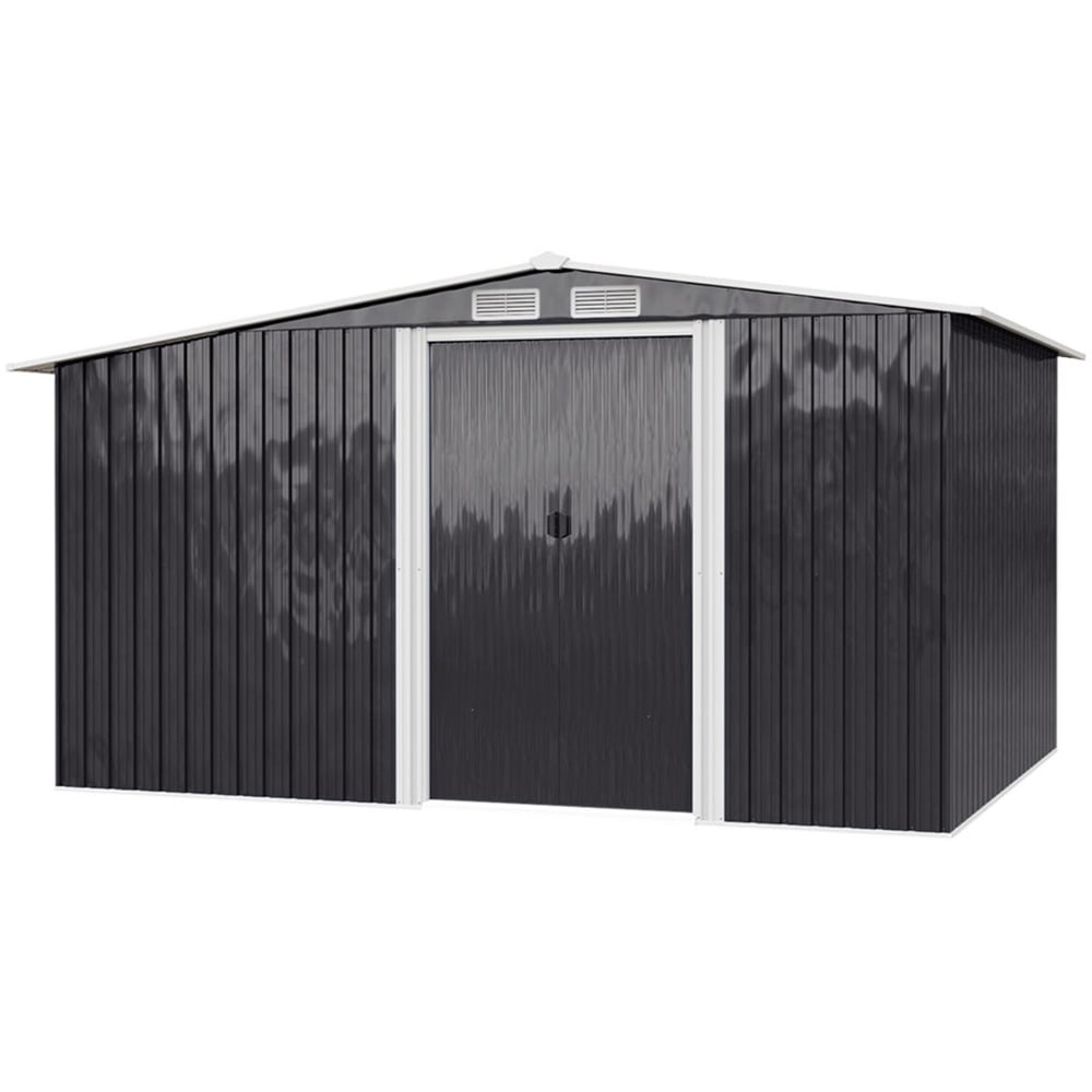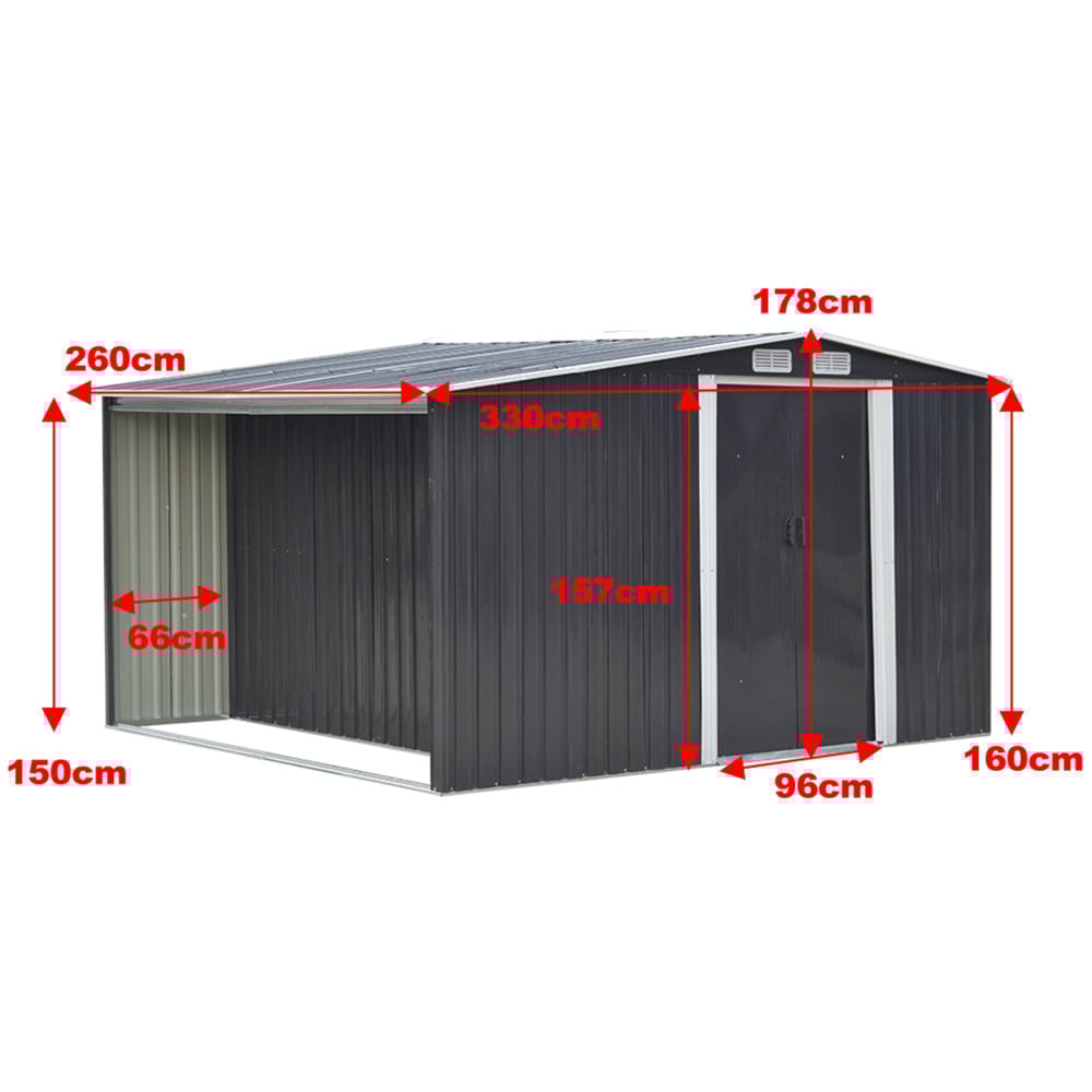 Organize all your garden tools effortlessly with this Living and Home 8 x 8ft Metal Garden Shed with Log Storage. It's crafted from steel to offer you a sturdy and reliable shed. With a large storage space, it can easily hold a variety of garden tools, furniture, and equipment. It also features ventilation shutters to allow air circulation and keep odour at bay. This shed offers an open storage spot so you can store logs conveniently. Use this robust and practical shed and neatly organise all your tools and equipment.