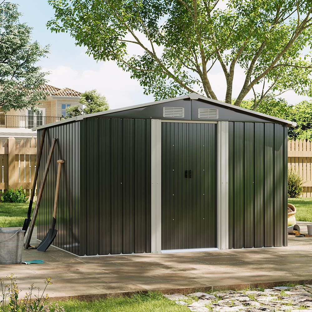 This heavy-duty garden shed, made from high-quality metal, offers exceptional durability and storage capacity for all your gardening tools. The steel frame guarantees the shed's sturdiness, ensuring it stands up to the elements. If you're looking for a quick and efficient solution to keep your garden organised, this shed is the ideal choice. Its sleek and simple design seamlessly fits into any outdoor space. Please note that the shed will cover approximately 56.61 square feet of the ground area.