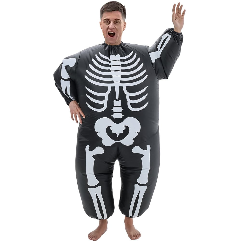 Get ready to spook everyone this Halloween with this Living and Home skeleton inflatable costume! This bone-chilling ensemble features a life-sized skeleton design that inflates to create an eye-catching and intimidating look. The costume is made from high-quality materials, ensuring durability and comfort. With its built-in fan, you will stay cool while turning heads at parties or trick-or-treating. It is easy to wear and offers a secure fit, making it perfect for adults who want to make a bone-rattling impression on the scariest night of the year.
