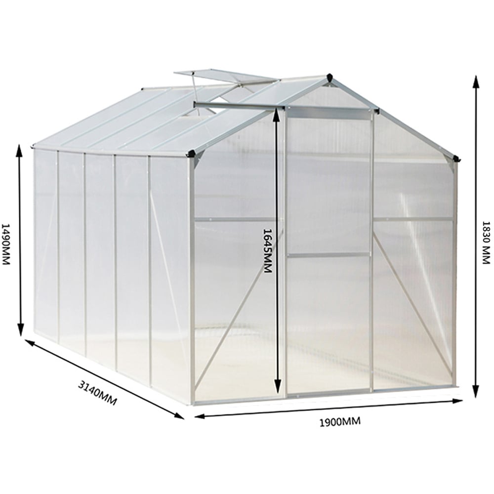 Living and Home Aluminium Polycarbonate 6.2 x 10.3ft Greenhouse