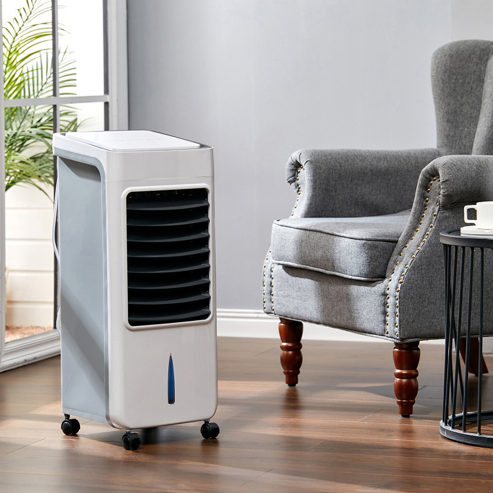 Stay comfortable with this versatile Living and Home Anion Air Conditioner. Offering three wind speeds and a 12-hour timer, it ventilates, cools, and humidifies air for a refreshing atmosphere. The quiet atmosphere. The quiet operation and 120-degree oscillation ensure efficient air circulation, while ice boxes provide extra cooling.