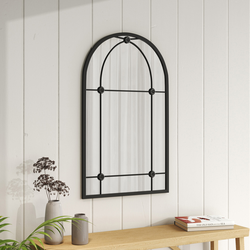 Living and Home Arched Metal Window Mirror 60 x 100cm